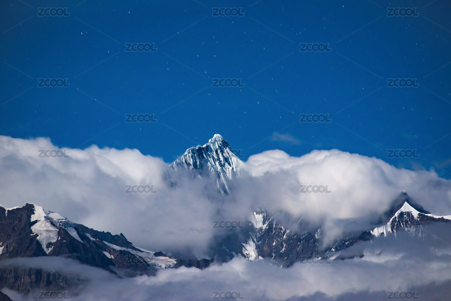 中国云南梅里雪山在星空和云层中的夜景