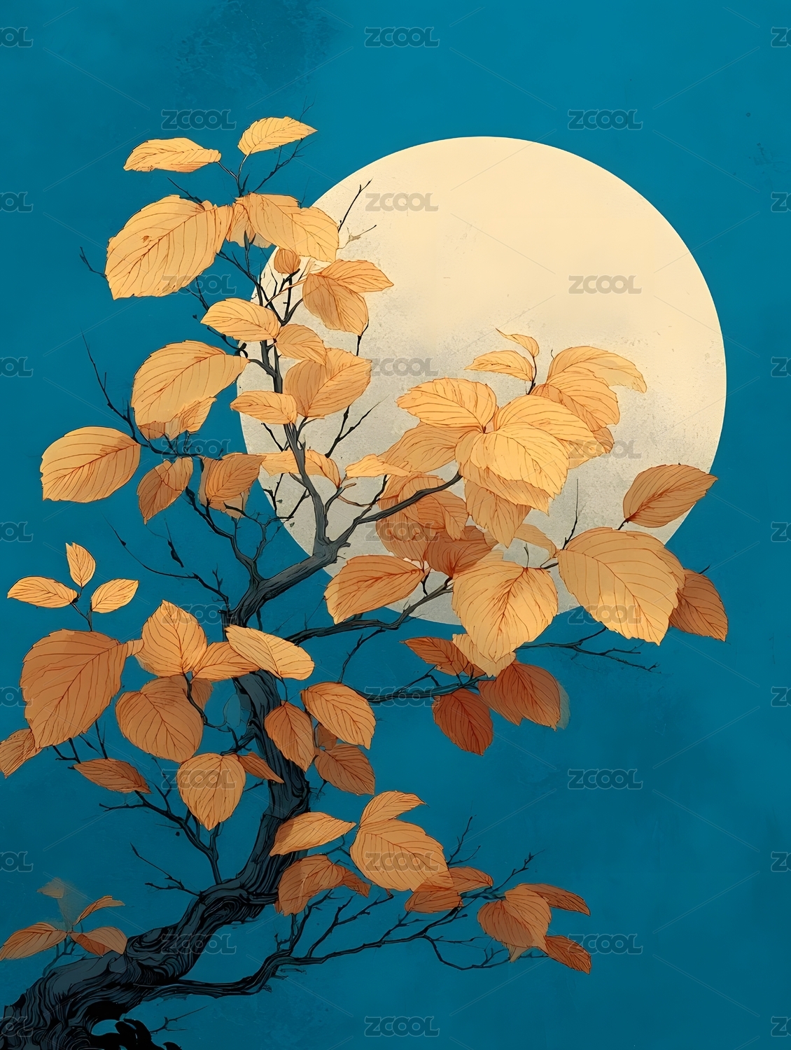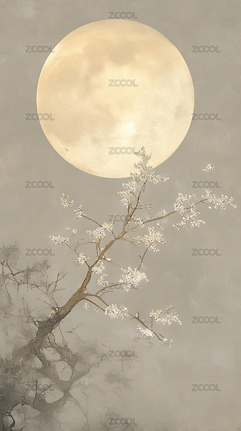 秋月树影艺术插画