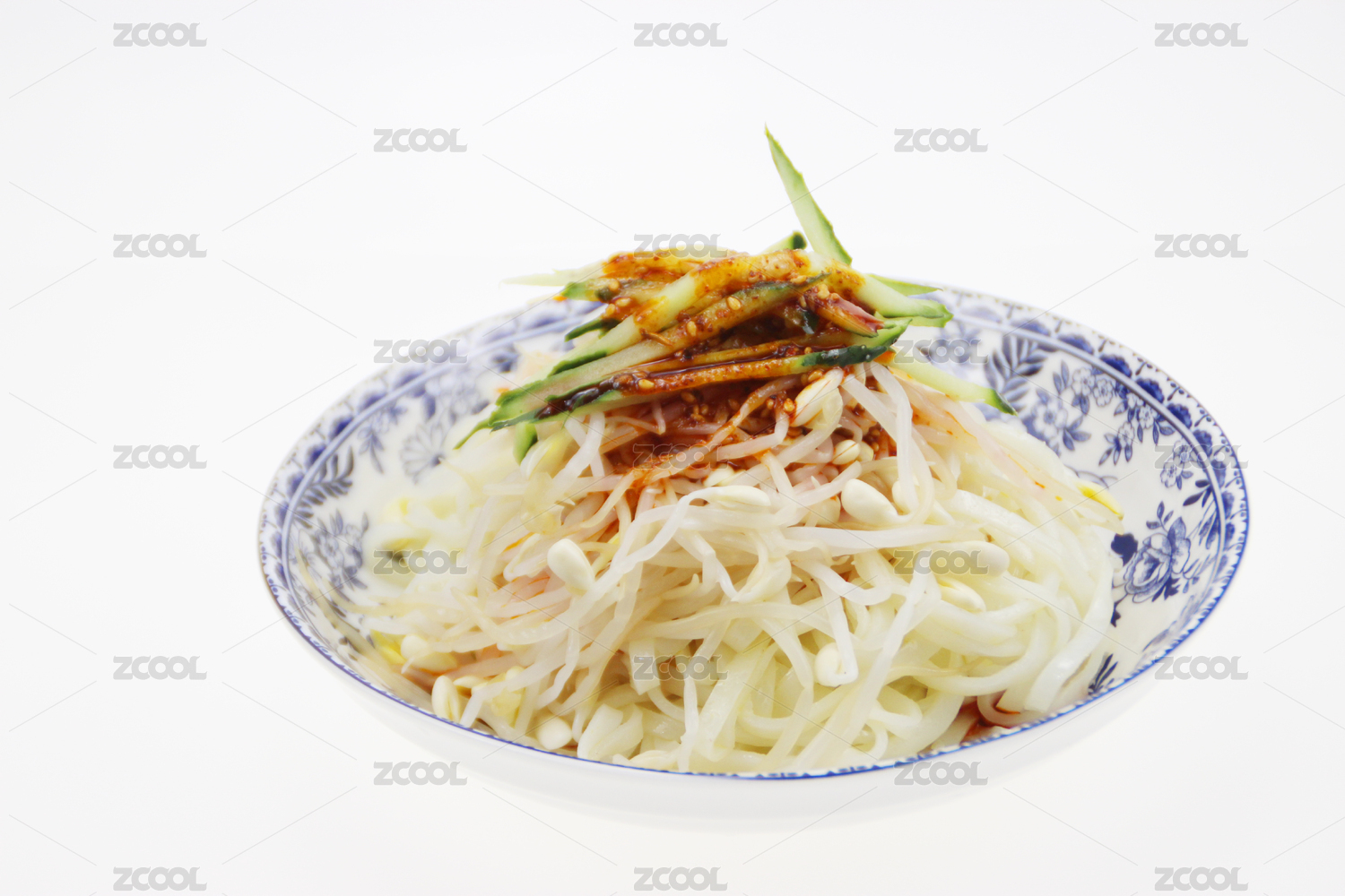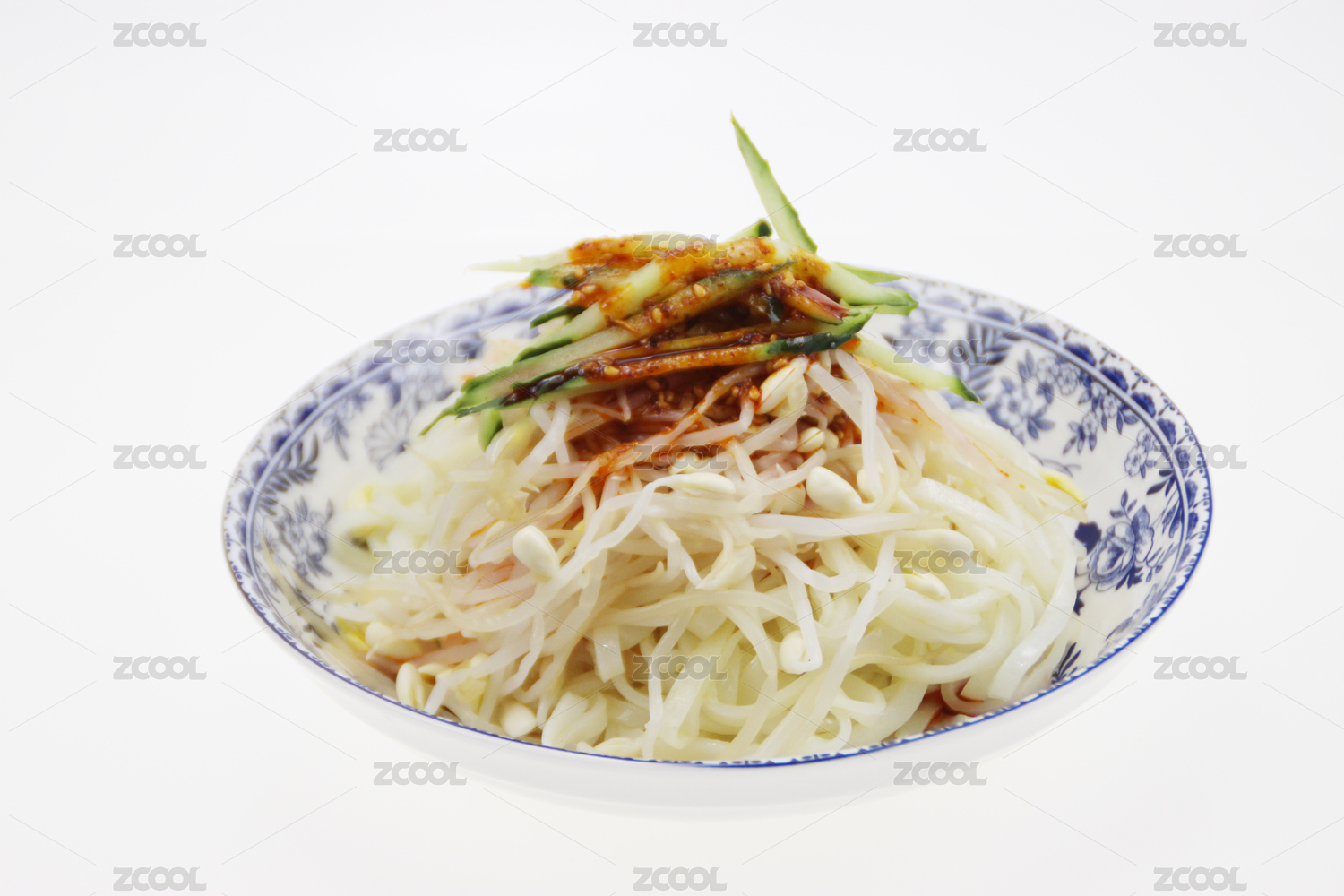 青花瓷碗里的面食陕西凉皮