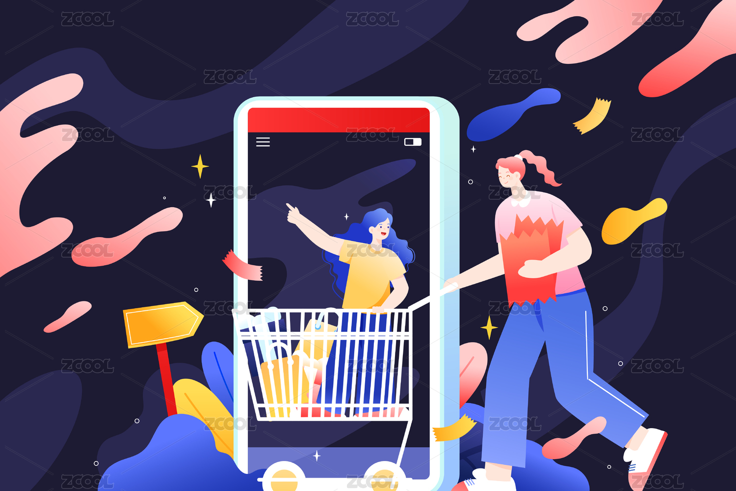 购物车电商舞台插画