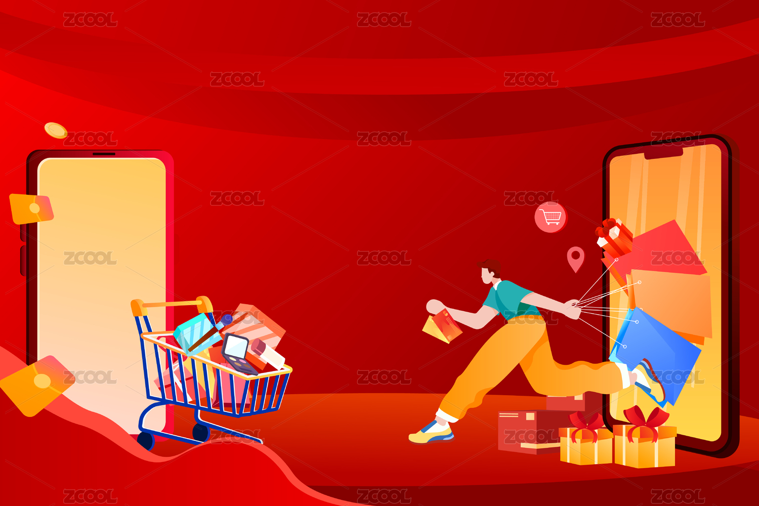 手机购物节促销插画