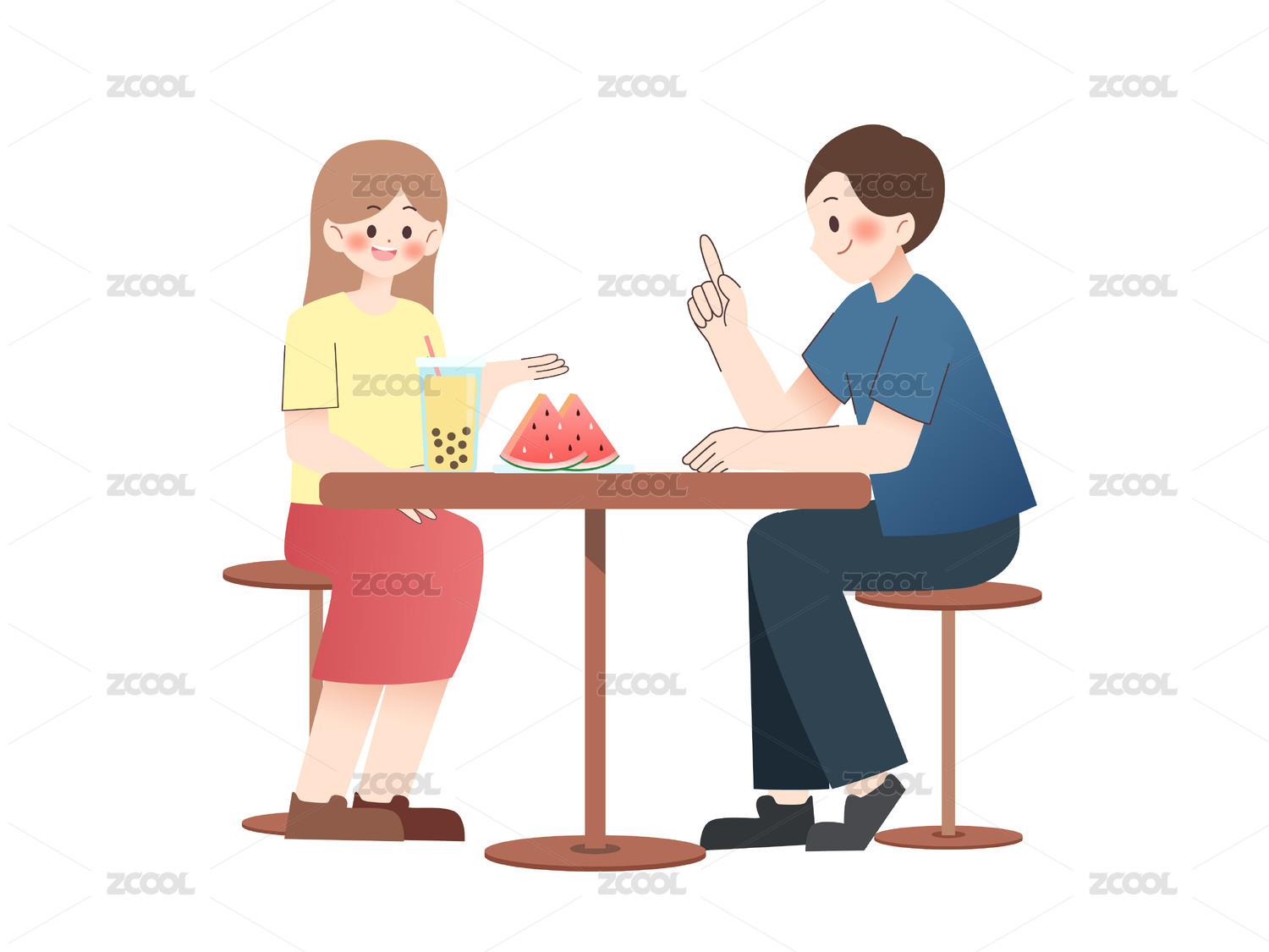 卡通可爱情人节情侣购物节电商促销渐变插画