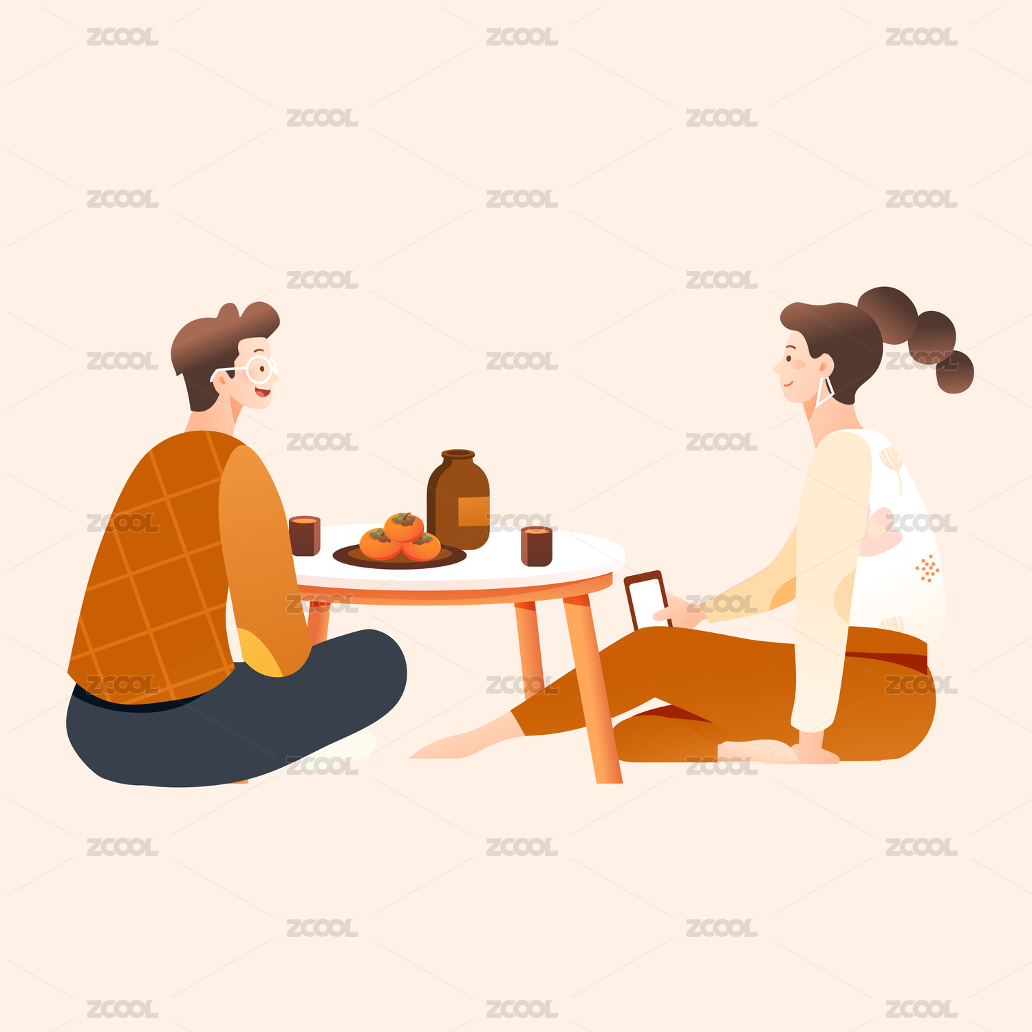 情侣厨房一起做饭烹饪美食健康餐饮饮食插画
