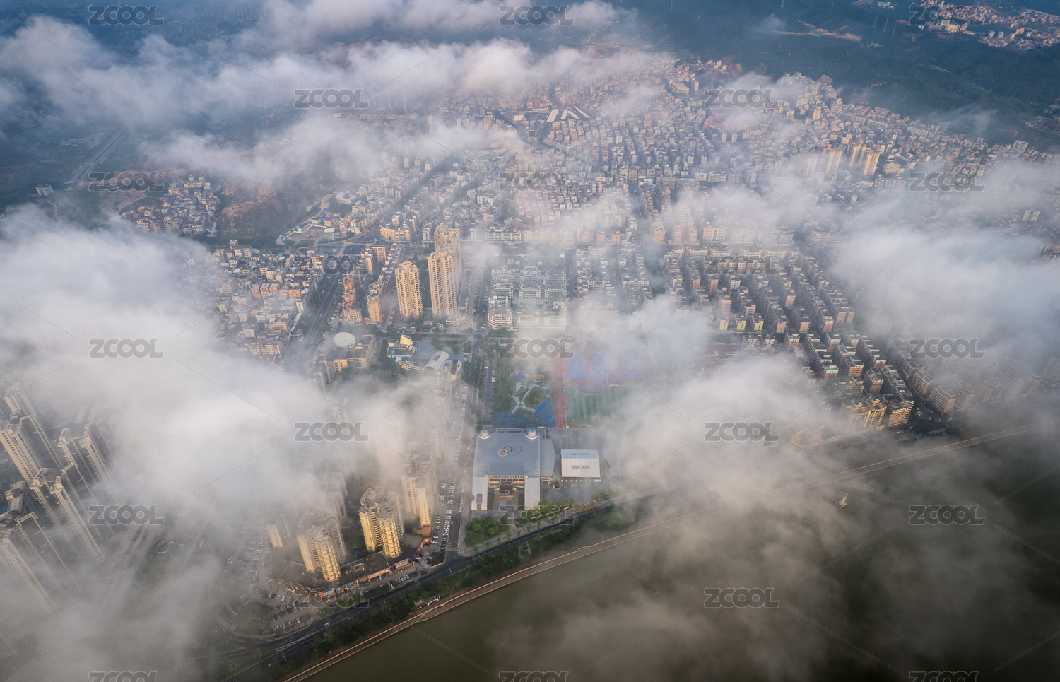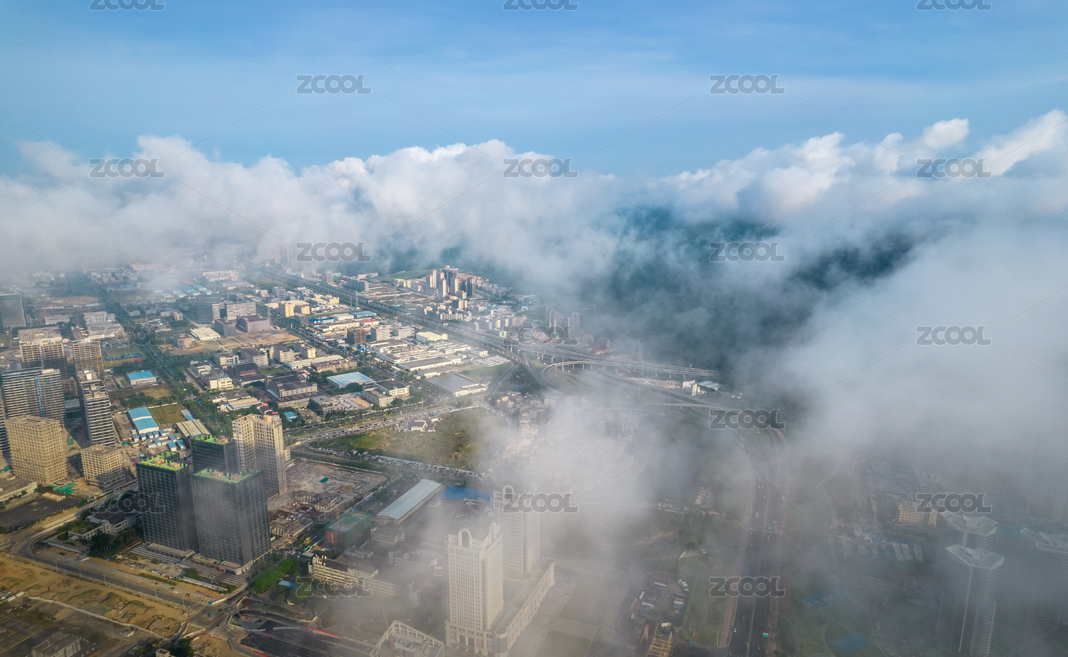 义乌,云海,商城,航拍视角,高空,云端,云上,江东街道,浙江省,鸟瞰