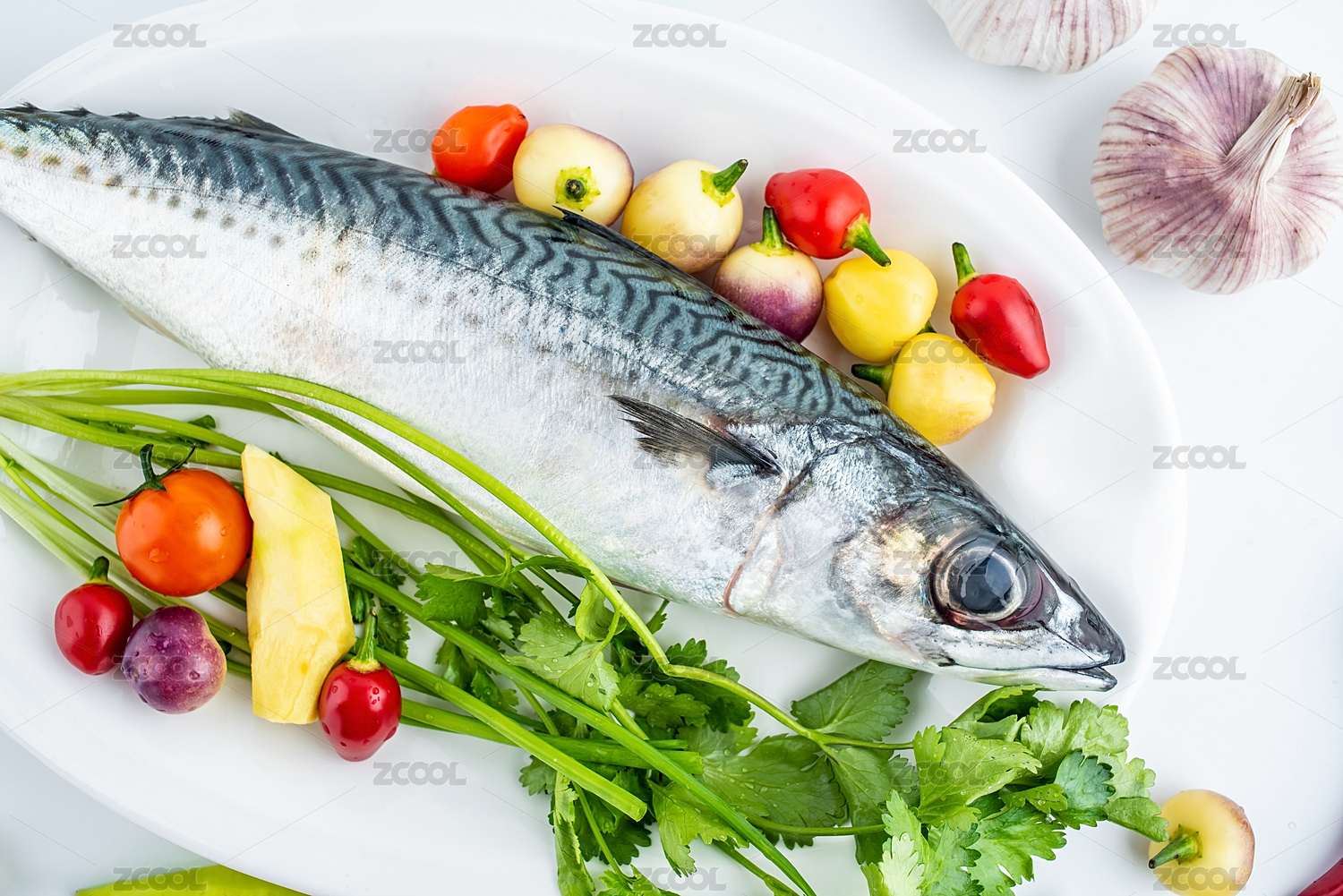 一条新鲜剖开的鲈鱼摆放在白碟子上