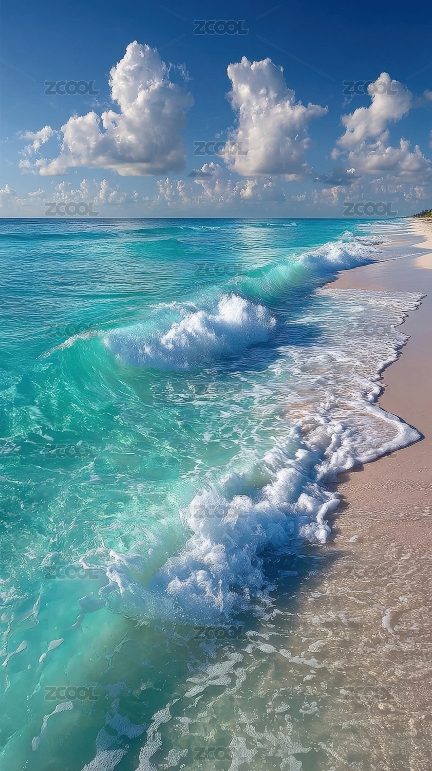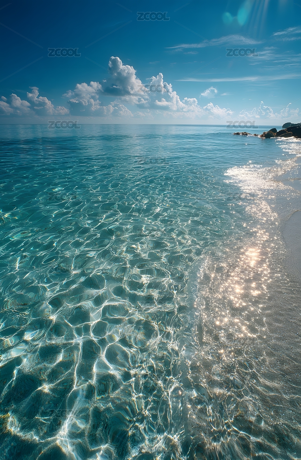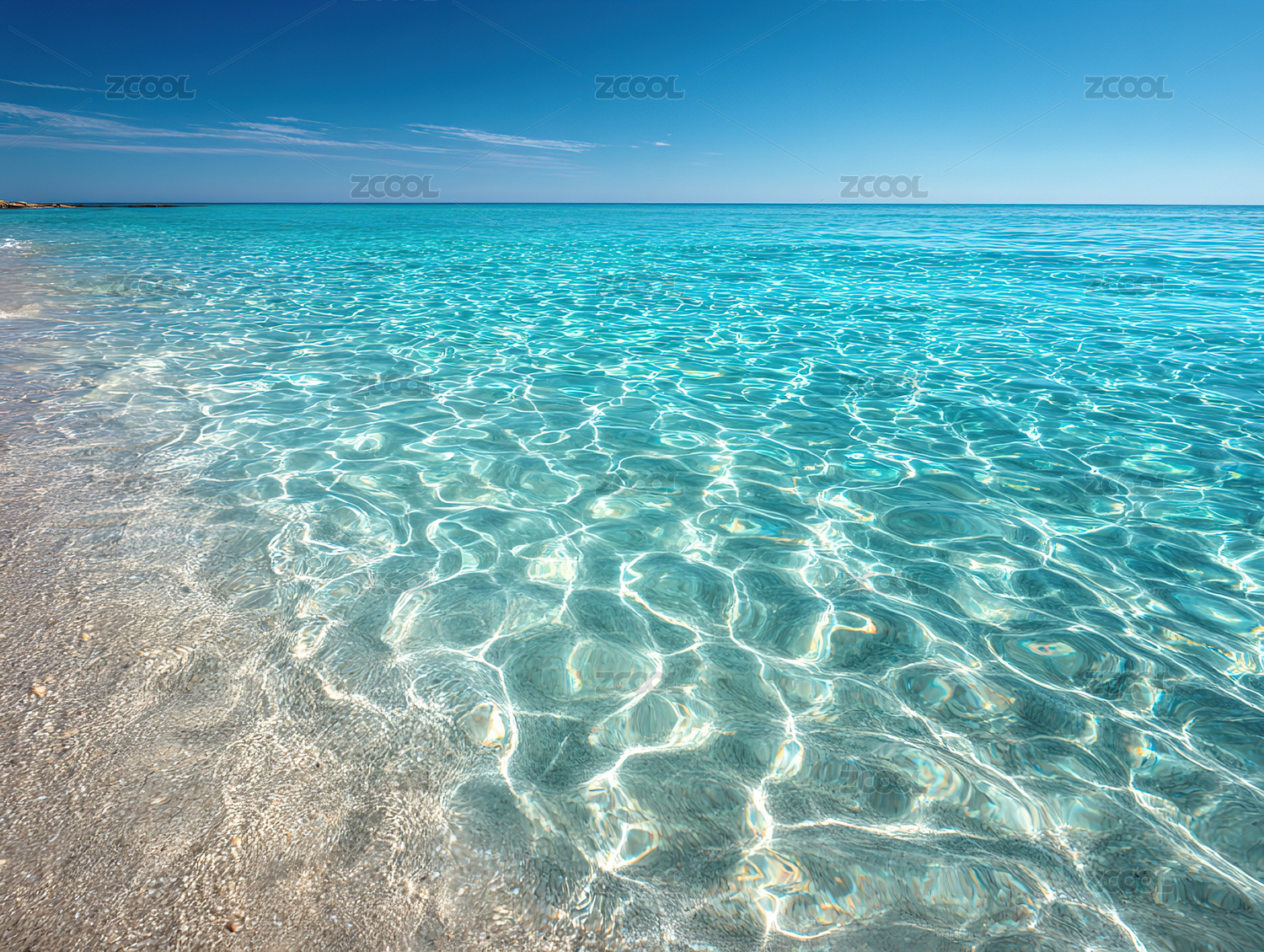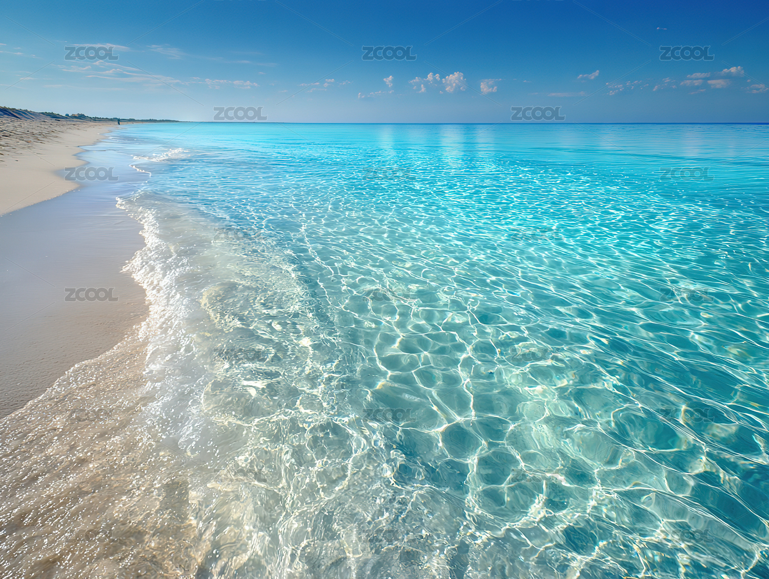 碧海蓝天下的清澈海水与白色沙滩 美丽景象
