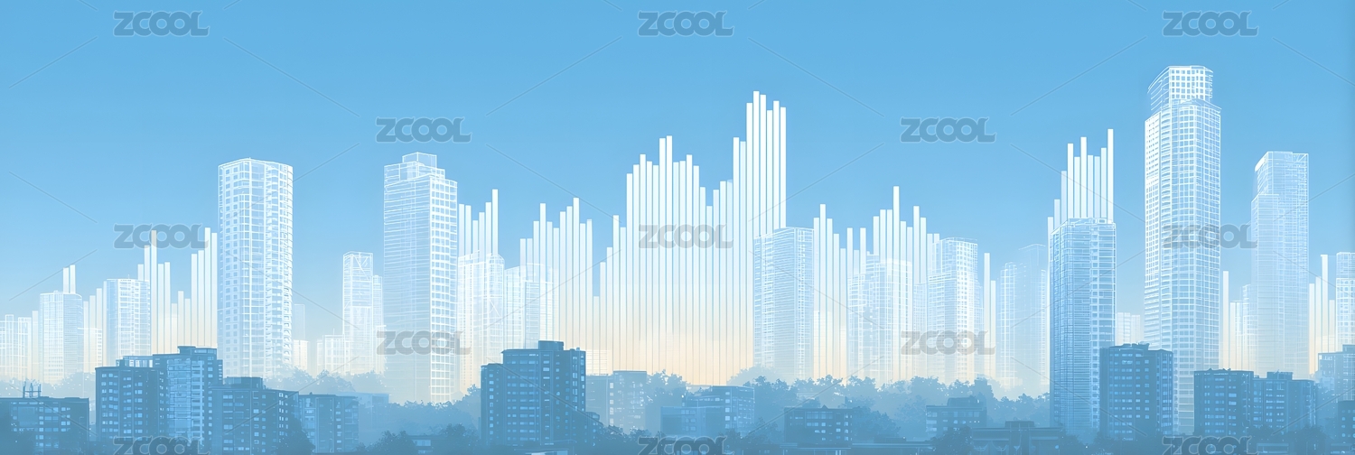 蓝色调城市高楼剪影图