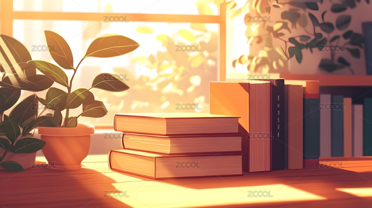 窗边书桌上的阅读时光