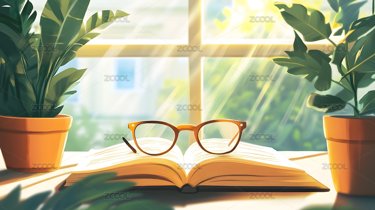 静谧午后开放书籍素雅插画