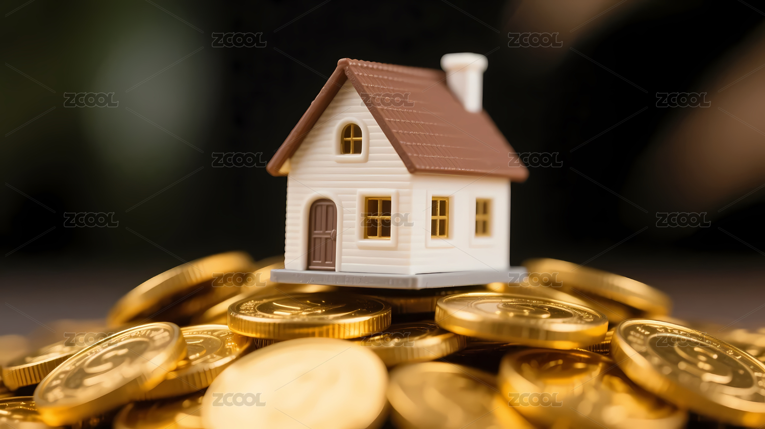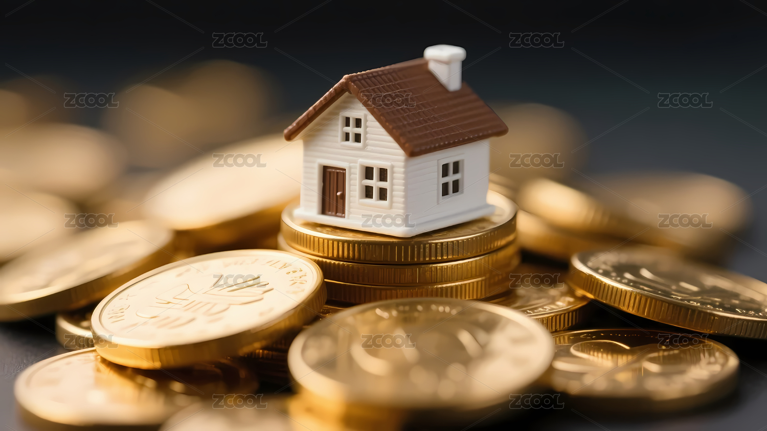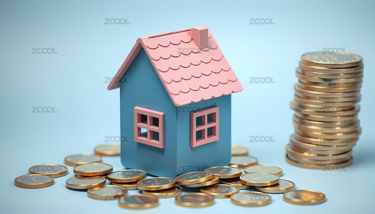 小房子与堆叠散落的金币