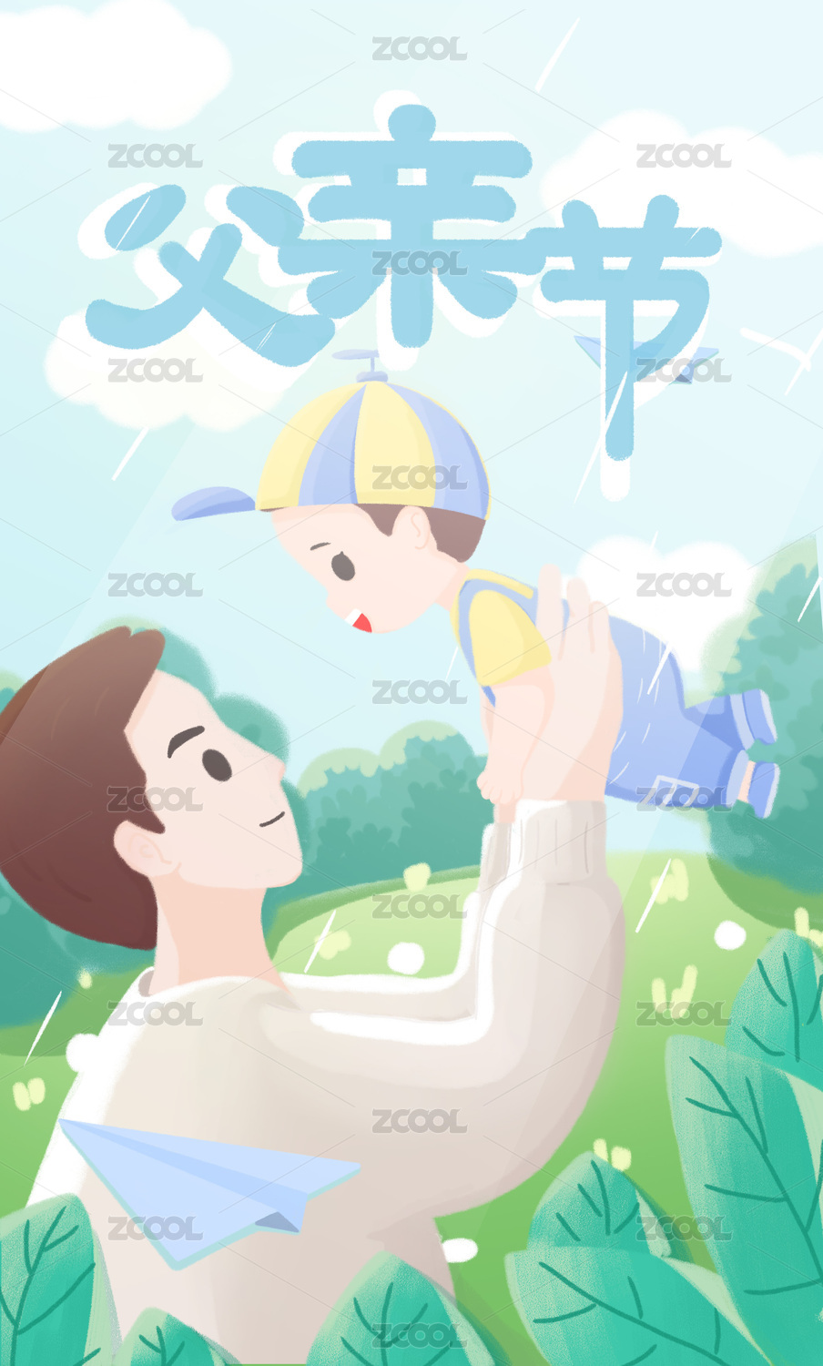 卡通父亲节亲子美好旧时回忆时间时光亲情情
