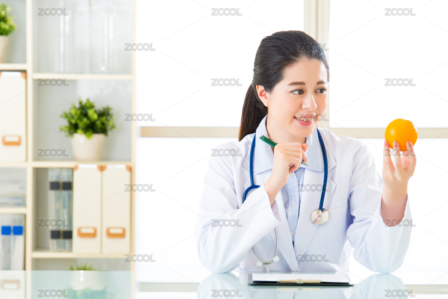 亚洲青年营养师建议吃橙子和好的符号,健康饮食