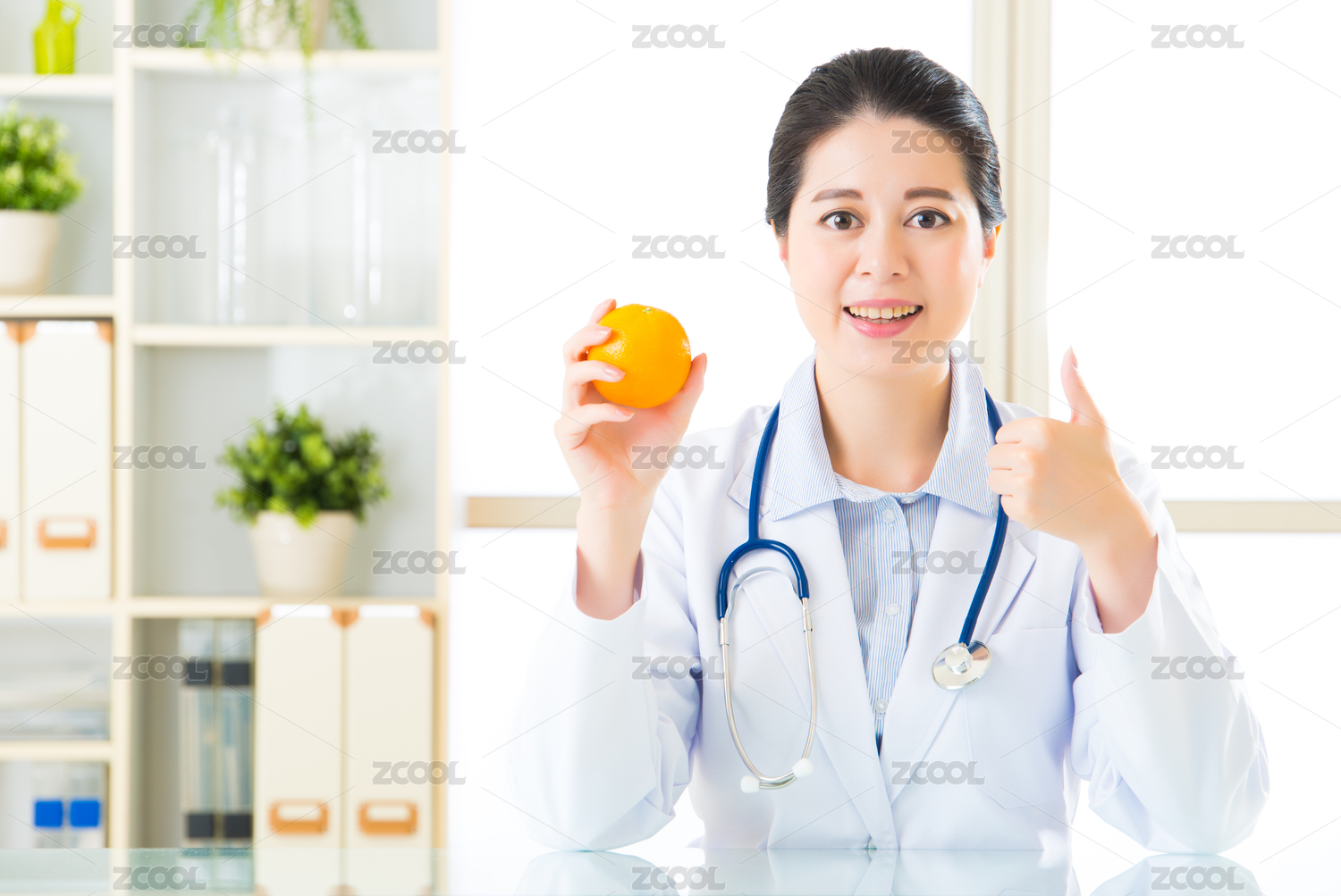 亚洲青年营养师建议吃橙子和竖起大拇指,健康饮食