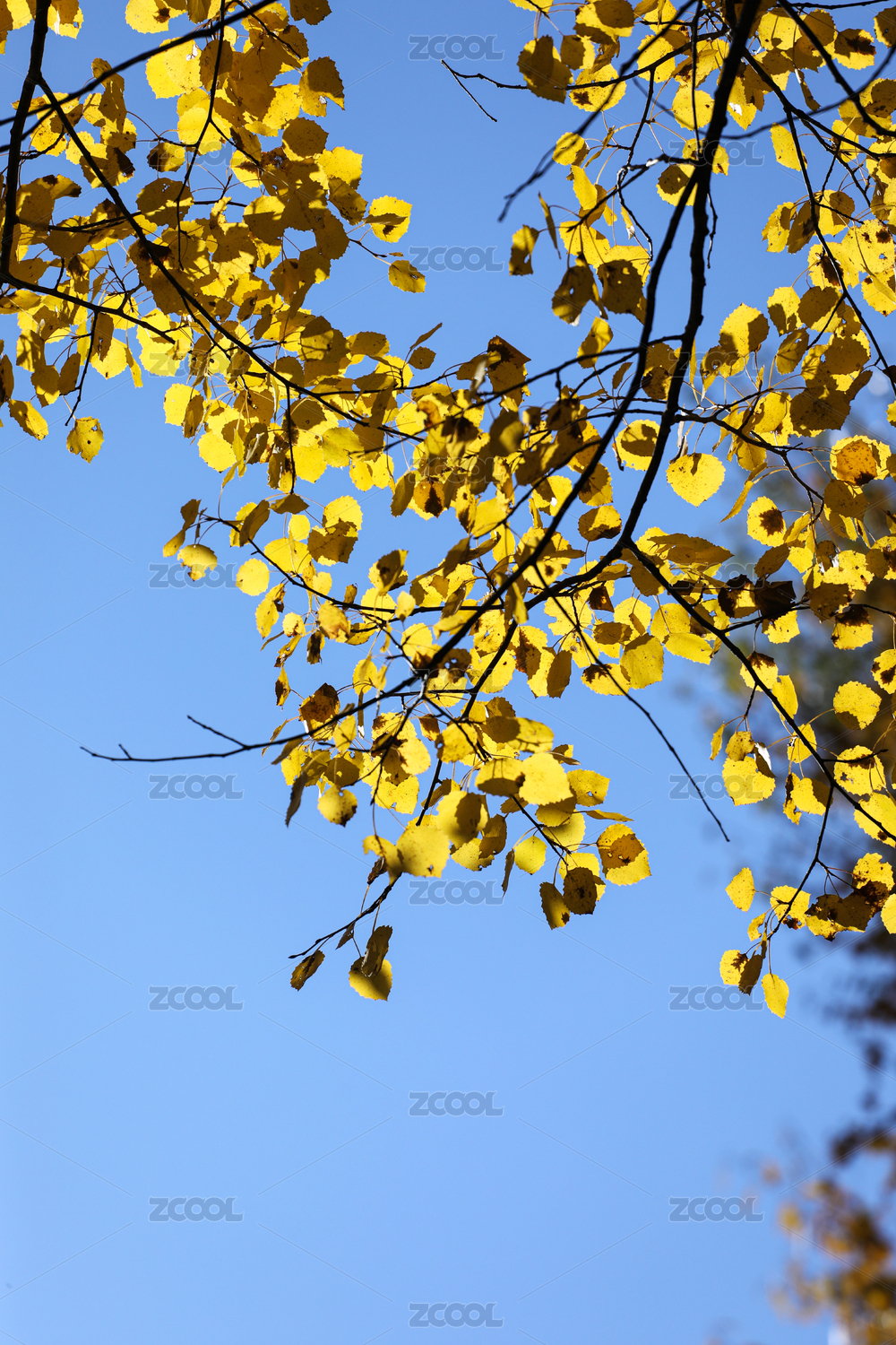 蓝天下的秋天立秋秋分树叶叶子的自然风景
