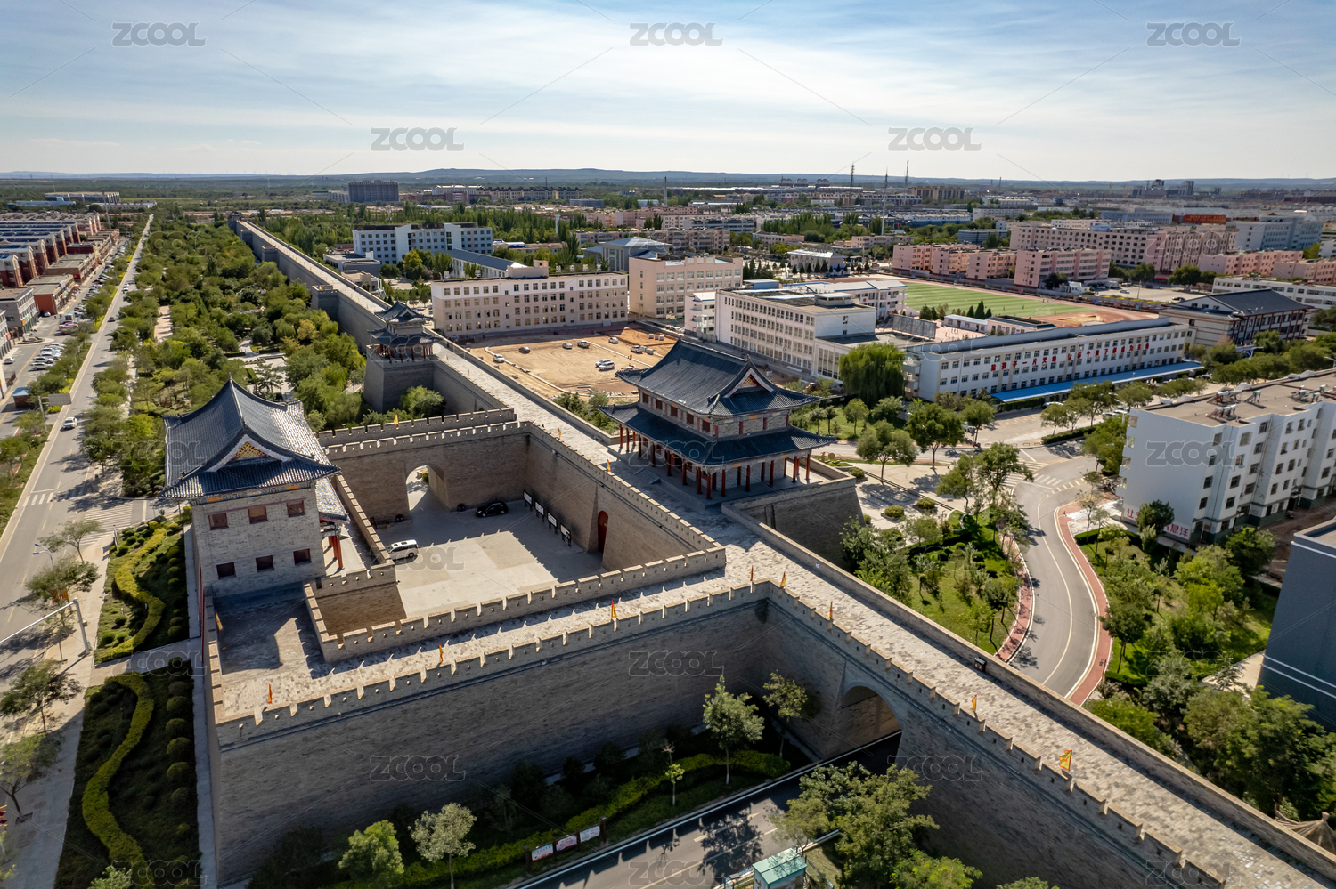 中国宁夏灵武玉皇阁鼓楼城市风光