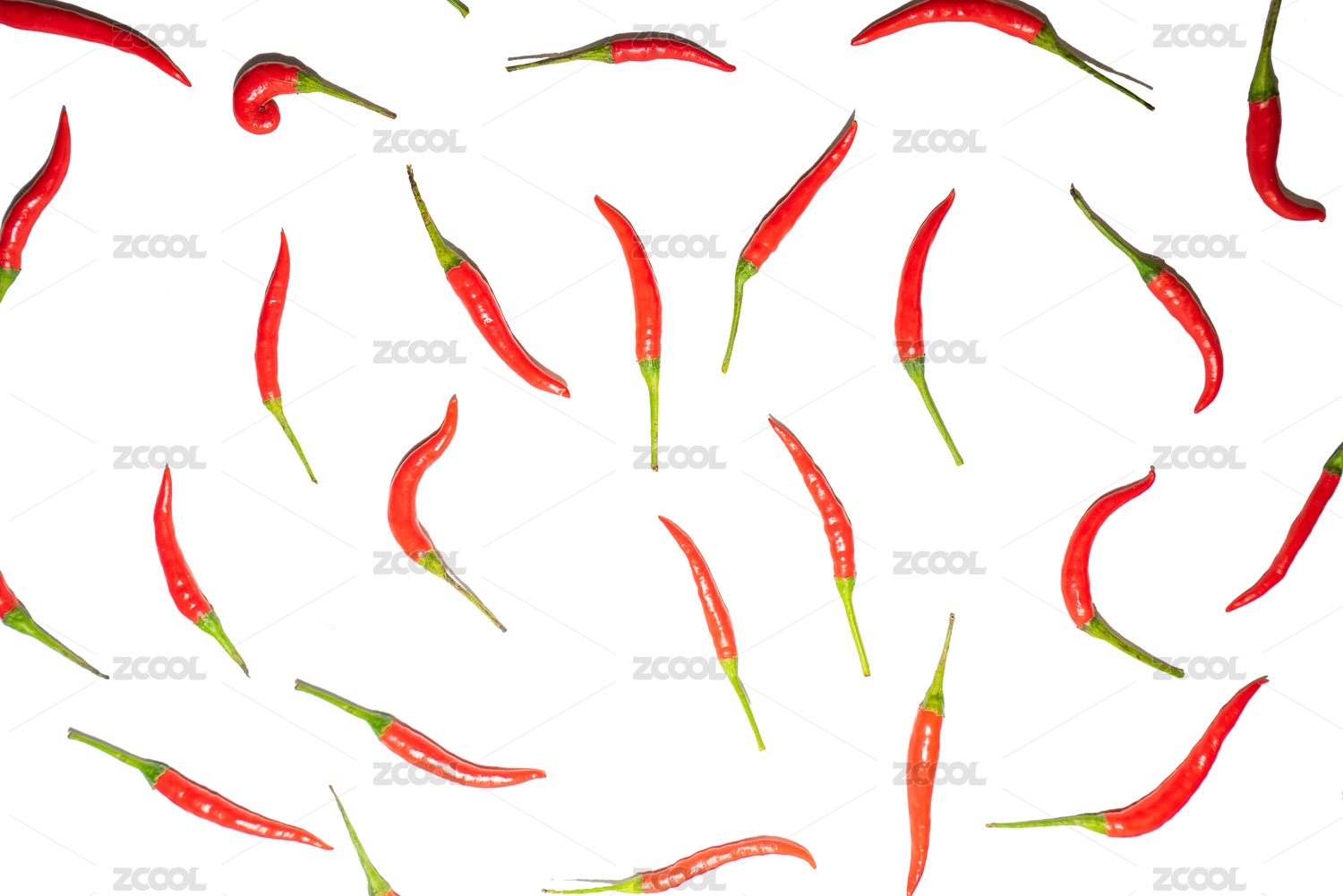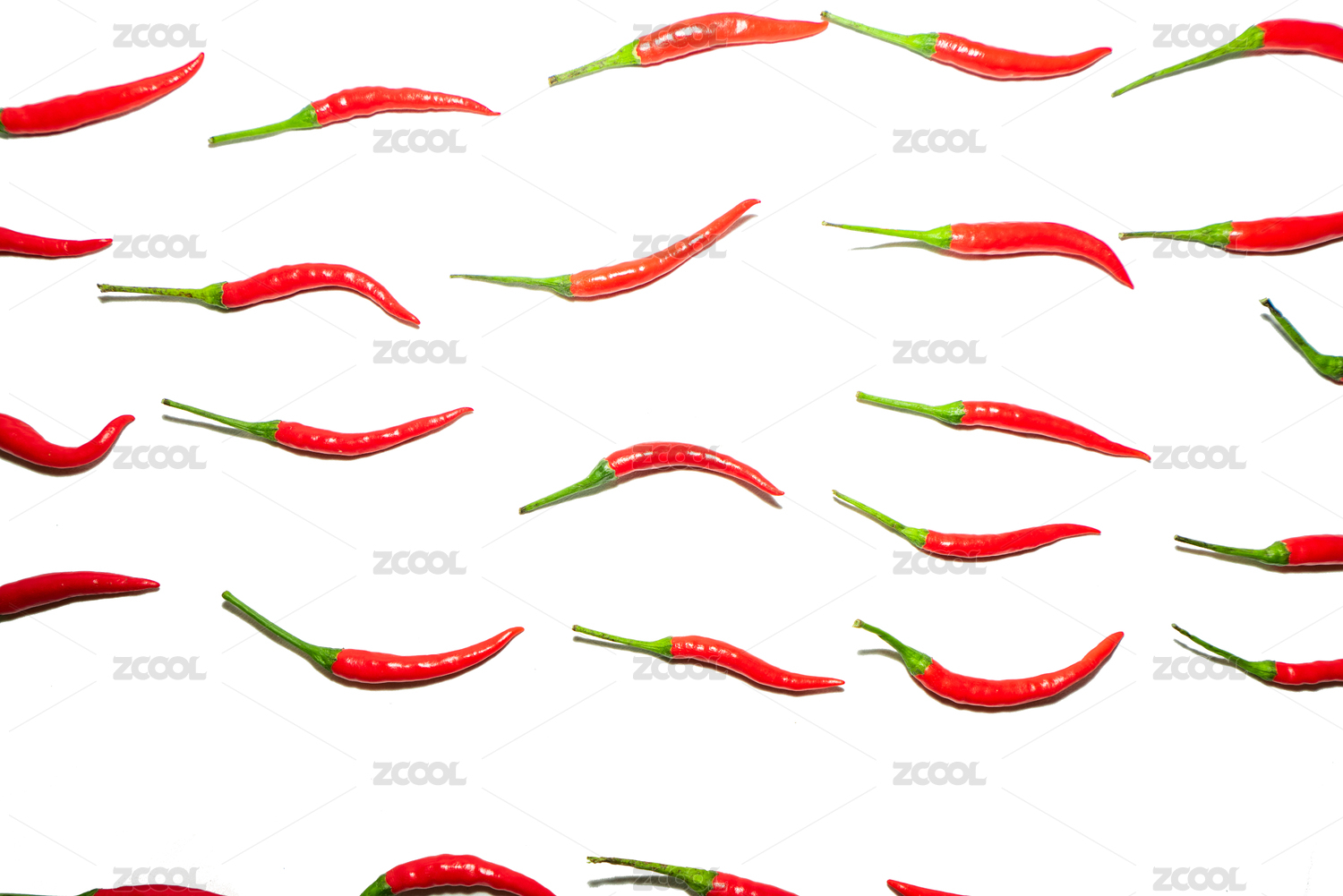 白色背景下辣椒重复的摆放的创意灵感图案图形