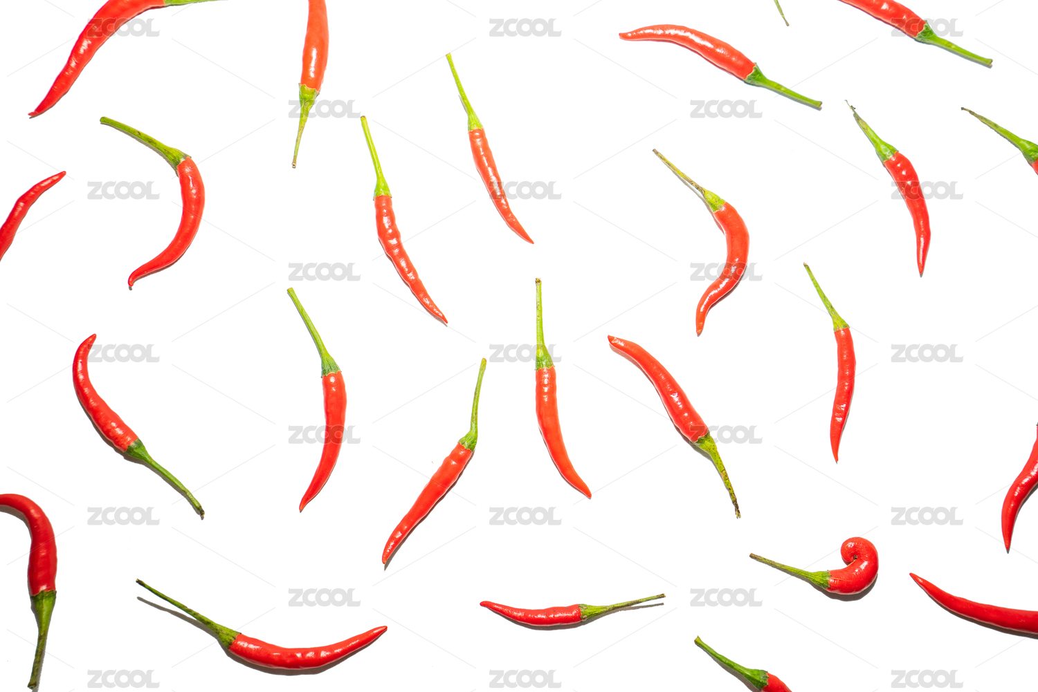 红色辣椒平铺在白色背景下行程图案图形