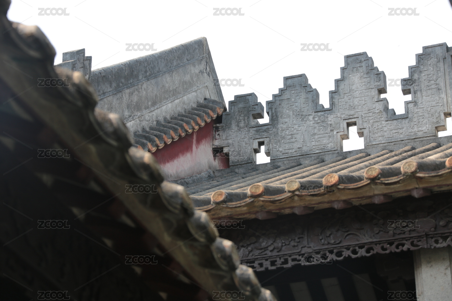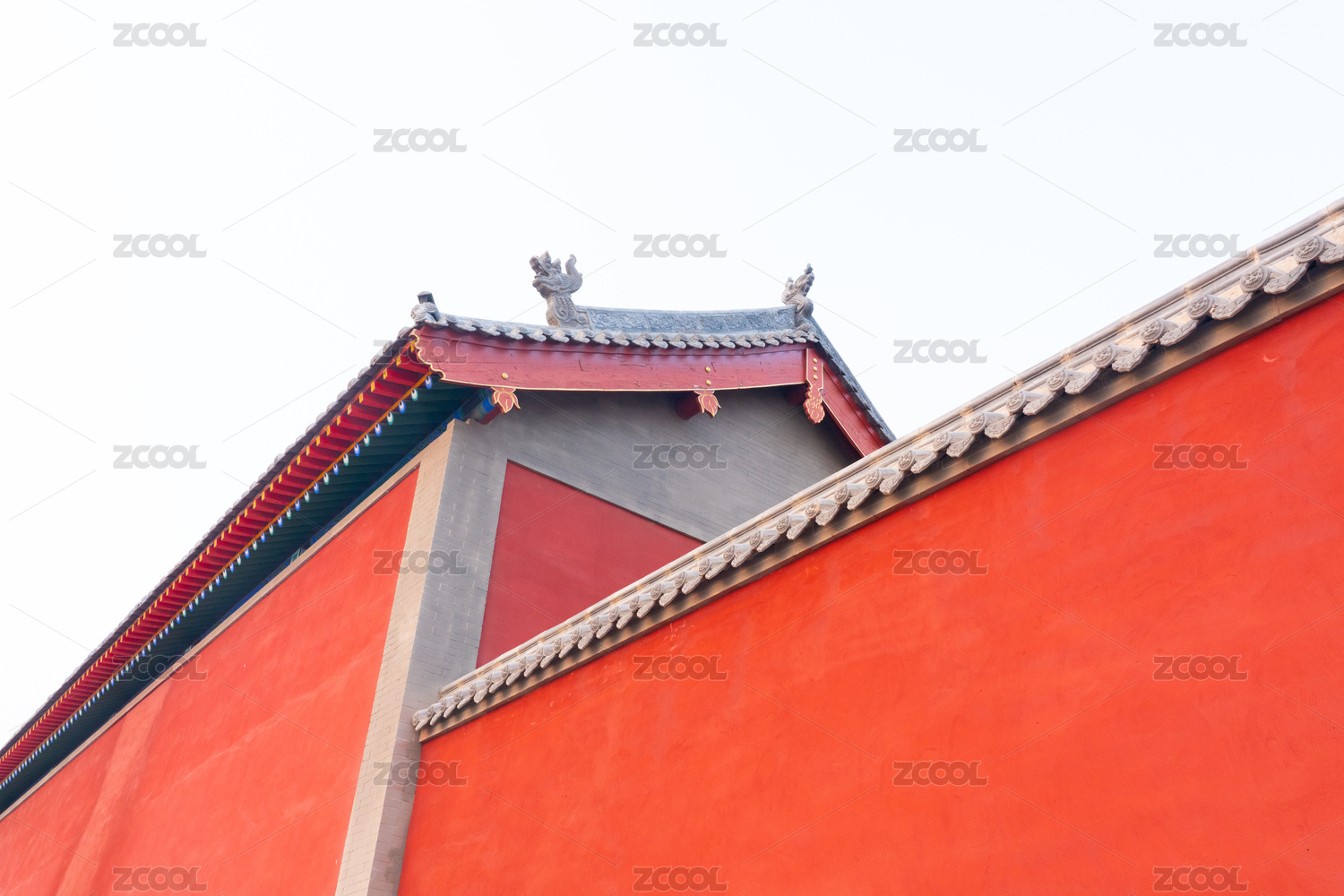 北京紫禁城的琉璃瓦顶脊兽和影子