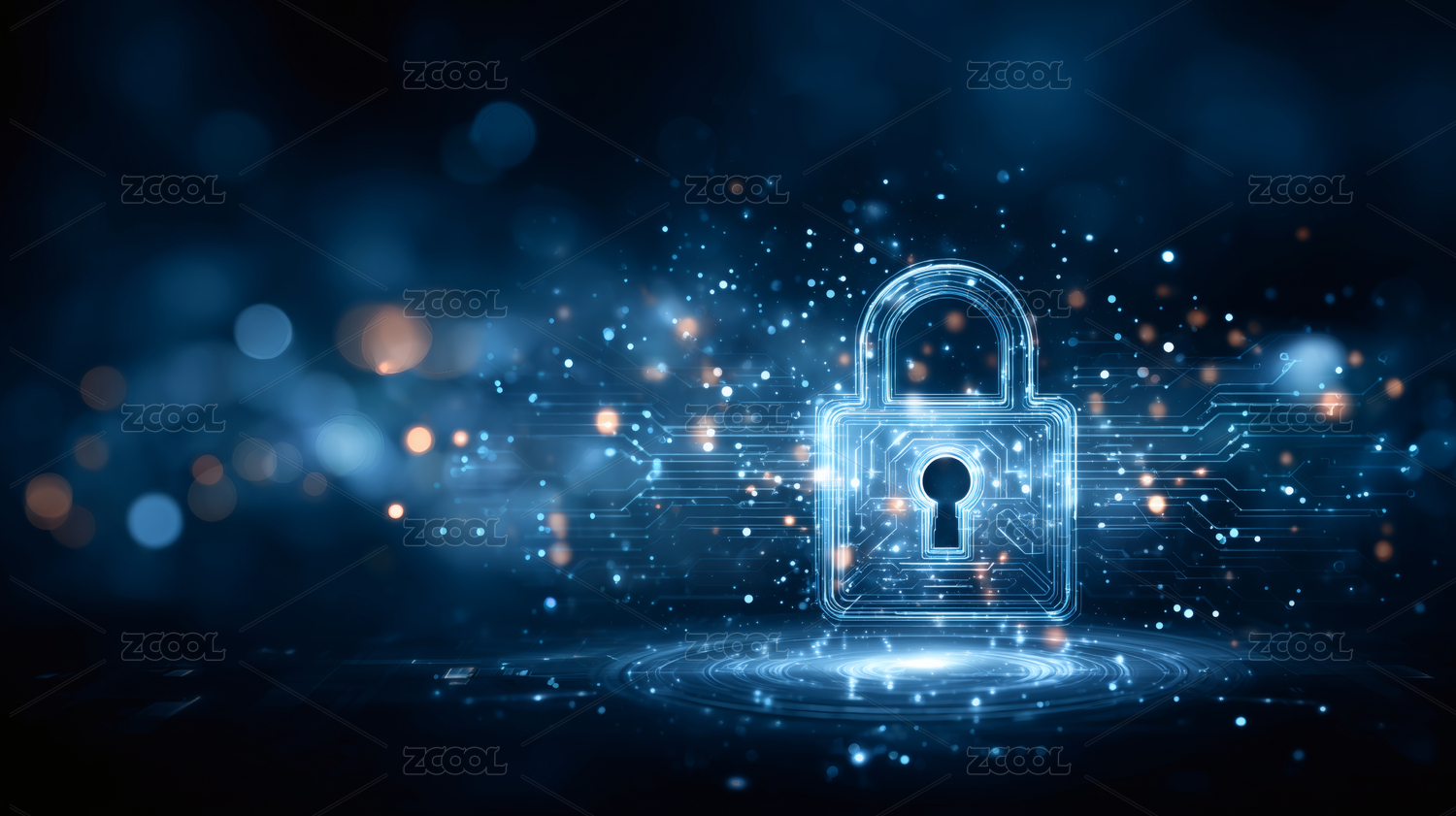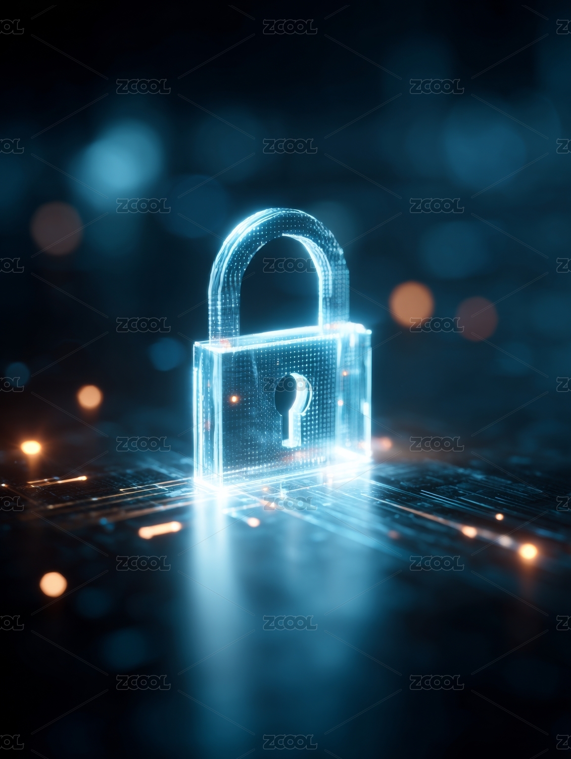 蓝色光芒中的锁形图案
