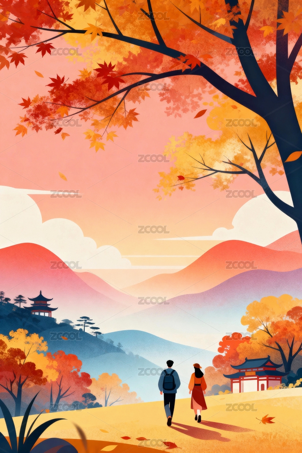 秋天枫叶漫步插画