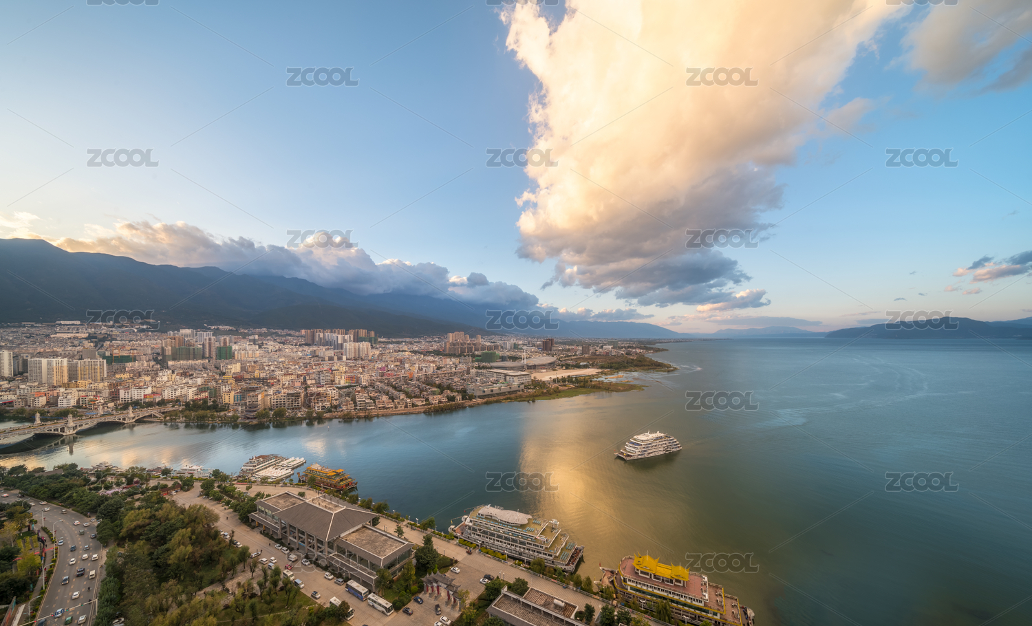 云南,大理,旅游目的地,云南旅游,洱海,航拍视角,城市,都市风景,房屋,下关
