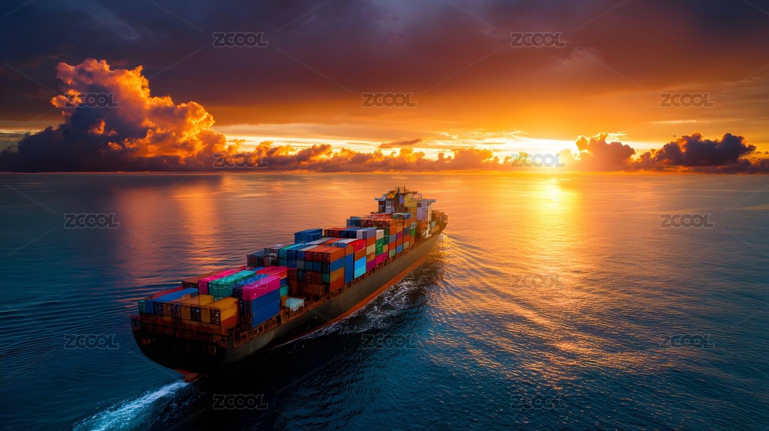 海运货船夕阳