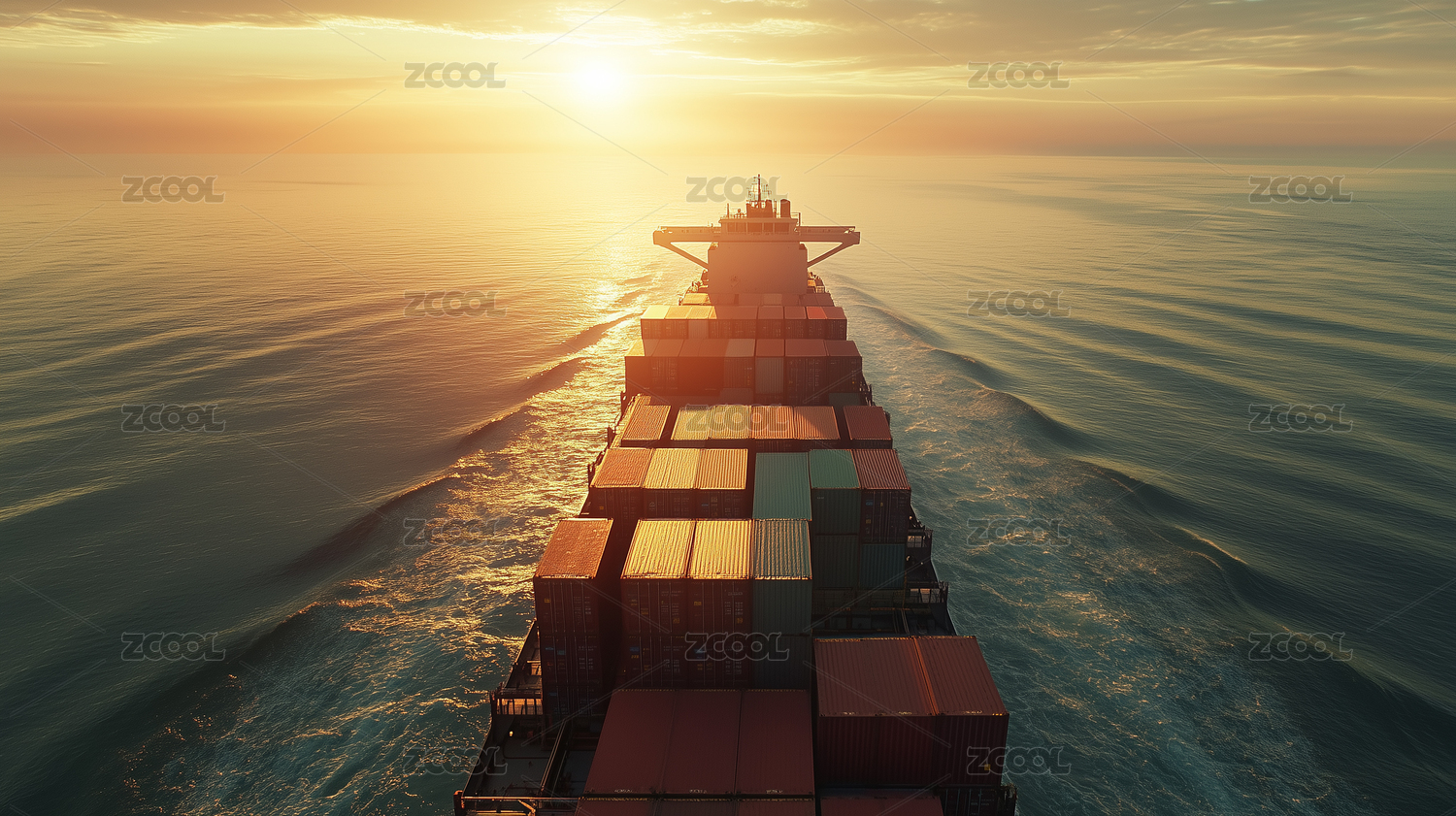 海运货船日出时分