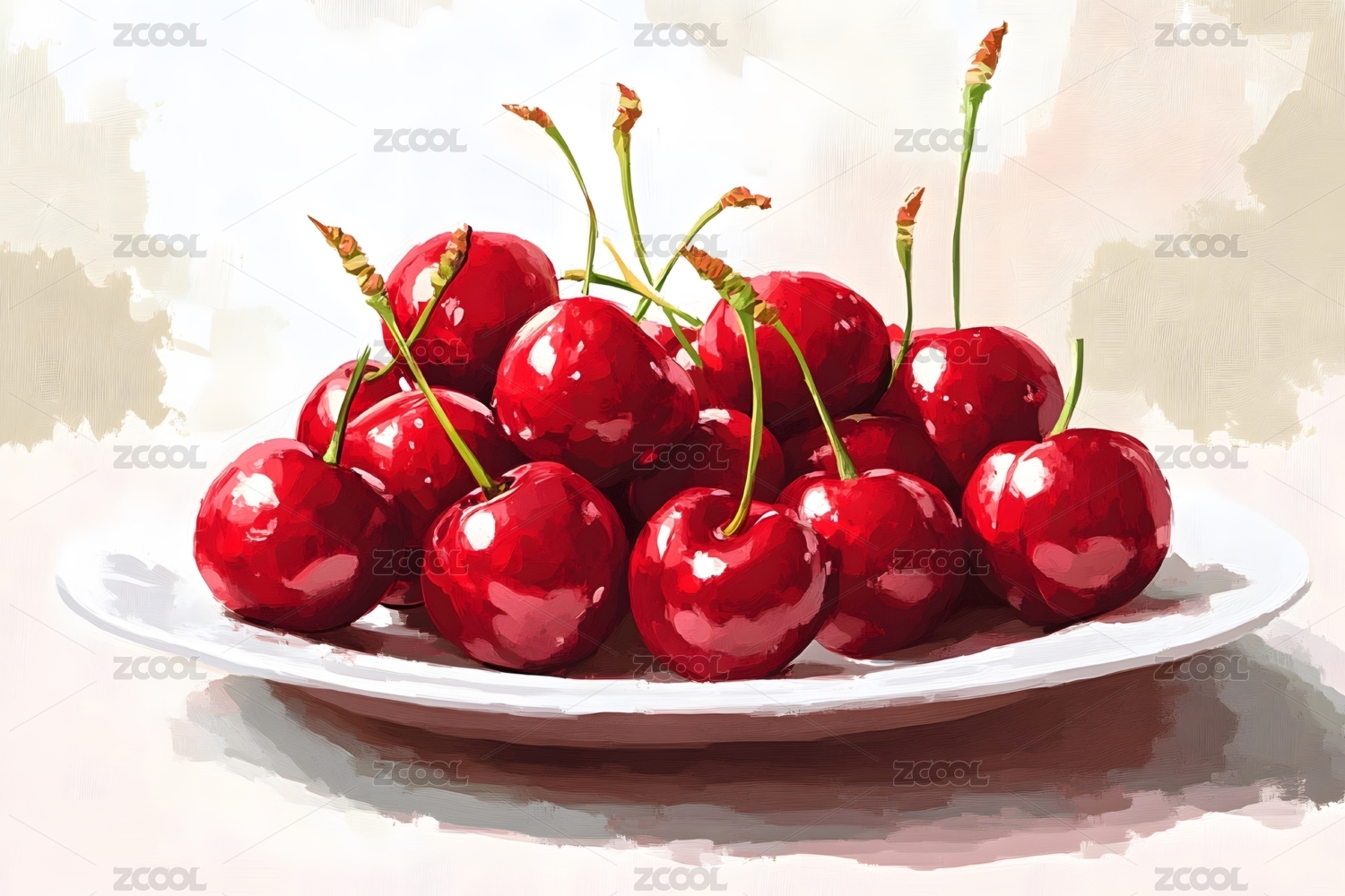 水彩风格的红樱桃绘画作品