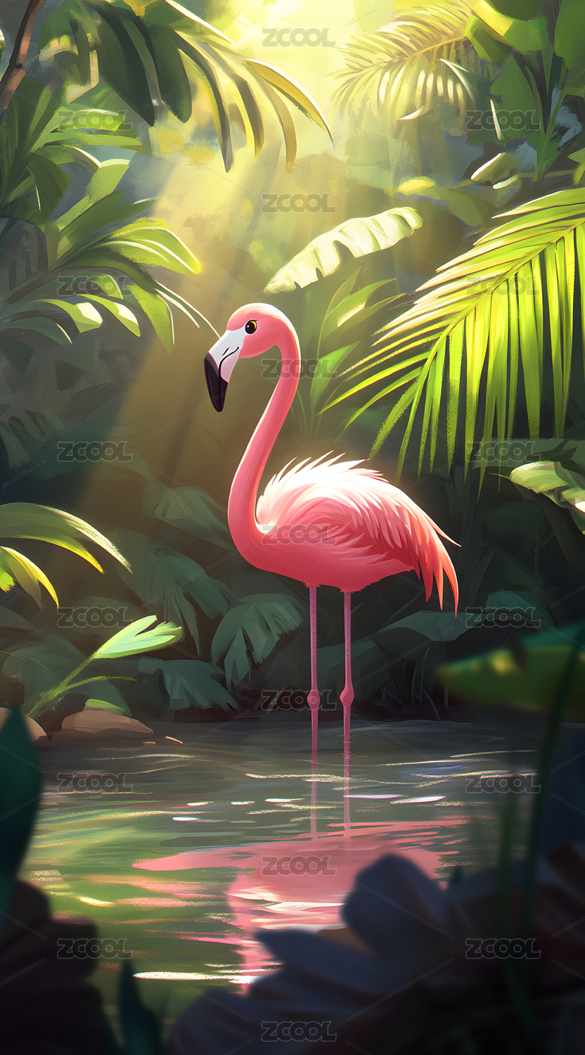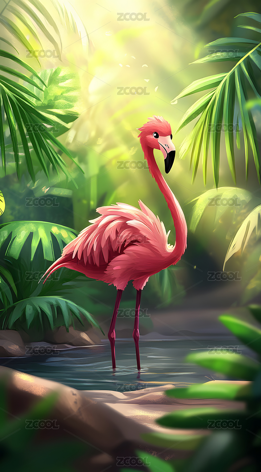 火烈鸟,鸟,动物,插画,壁纸,热带,植物,抽象,彩色,可爱