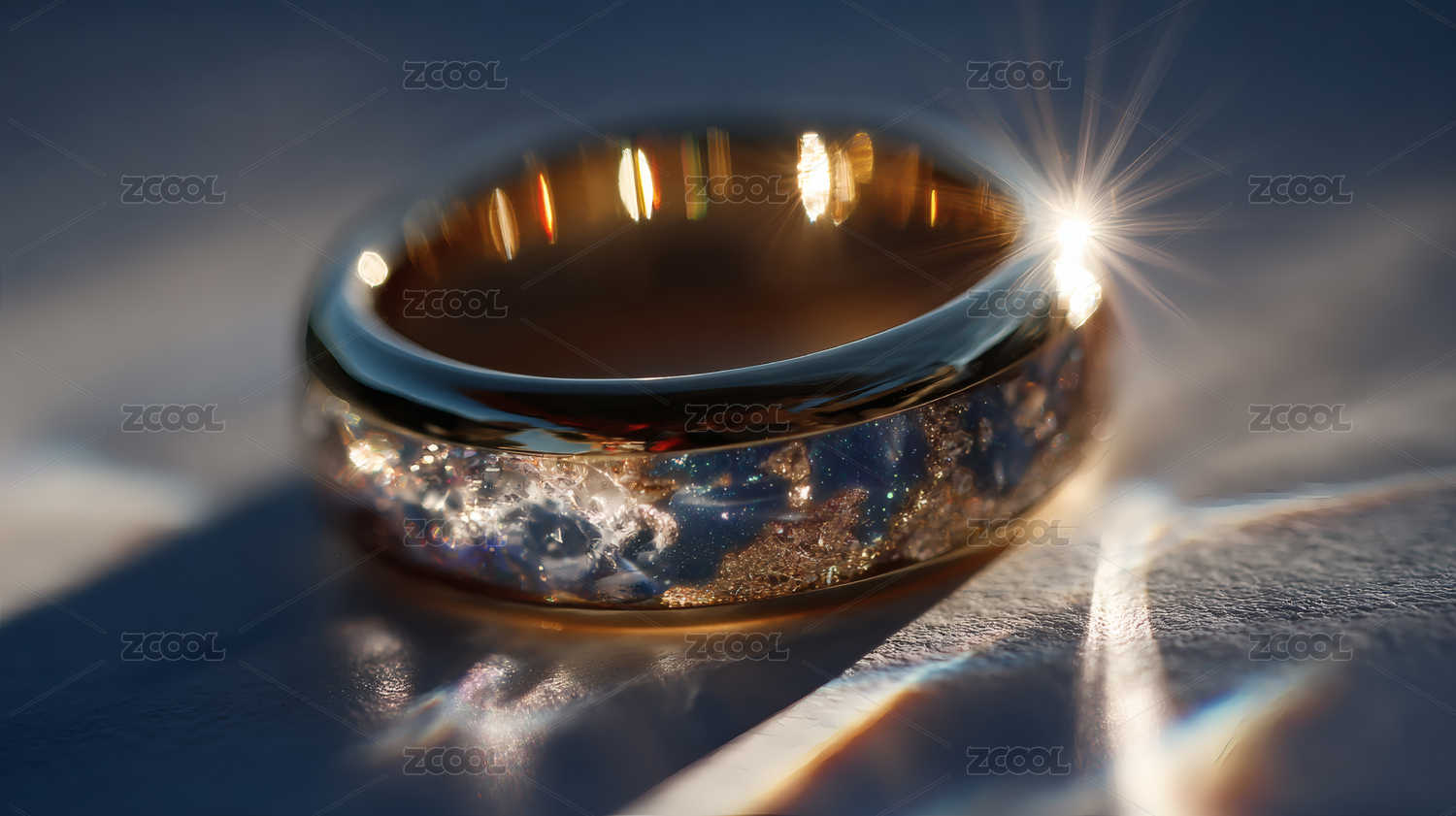 金色戒指光线照射
