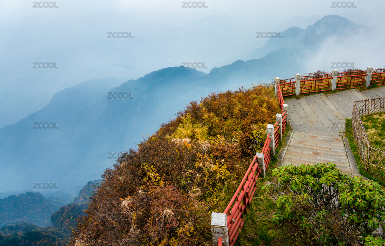 四川峨眉山金顶山脉山川悬崖栈道云雾云海
