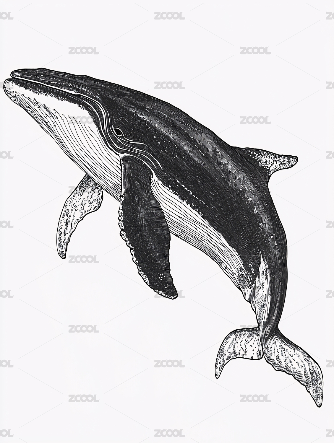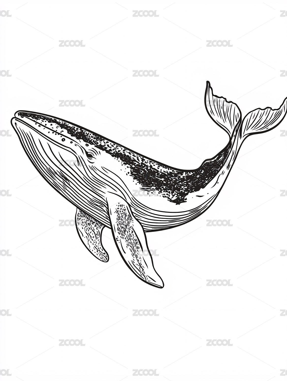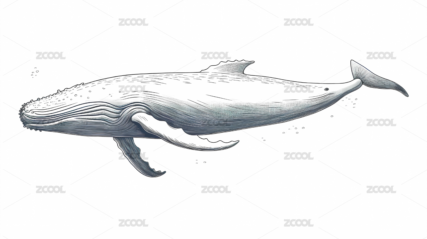 治愈系唯美插画一条蓝色的鲸鱼在遨游