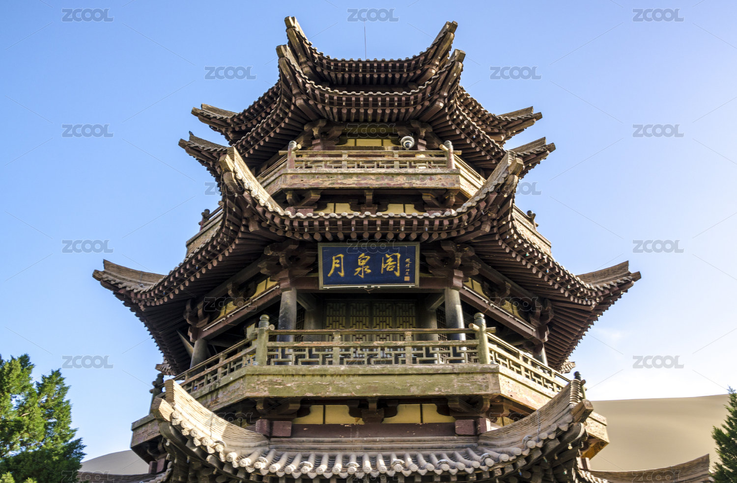 甘肃敦煌鸣沙山月牙泉沙漠月泉阁