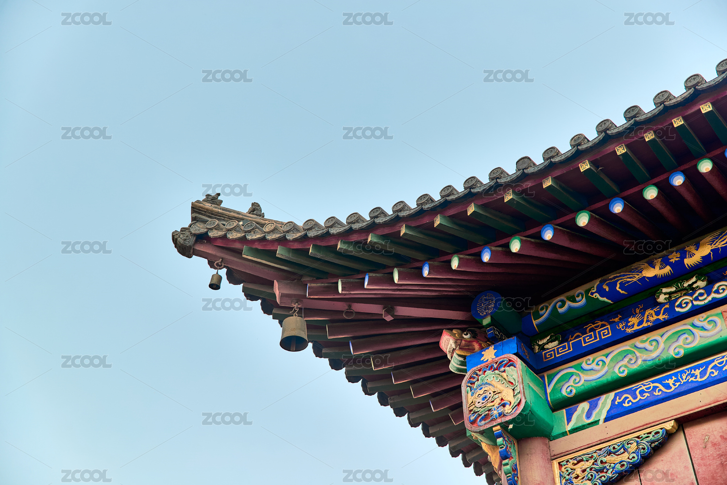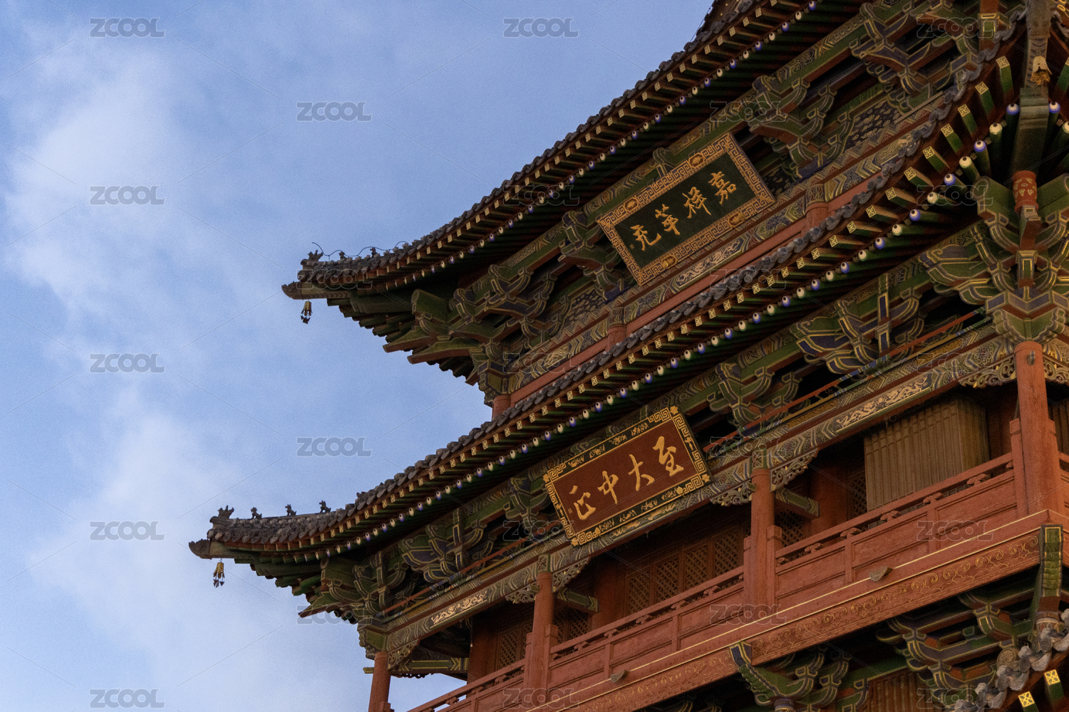 中国山西大同云冈石窟古寺庙塔顶屋檐风光