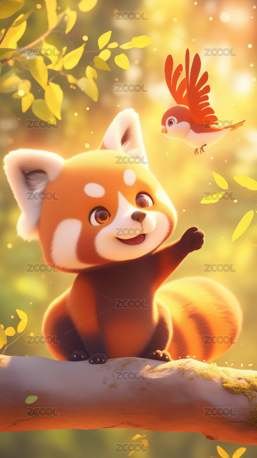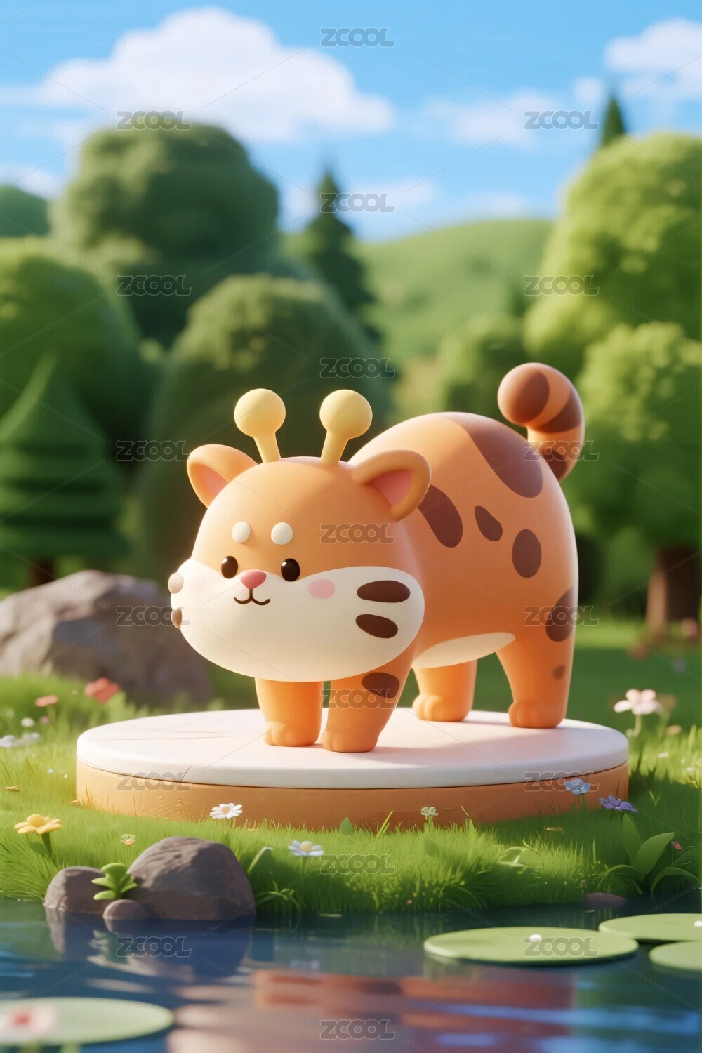 3D,插画,可爱风,卡通,动物,自然,三维,竖构图,留白,圆润