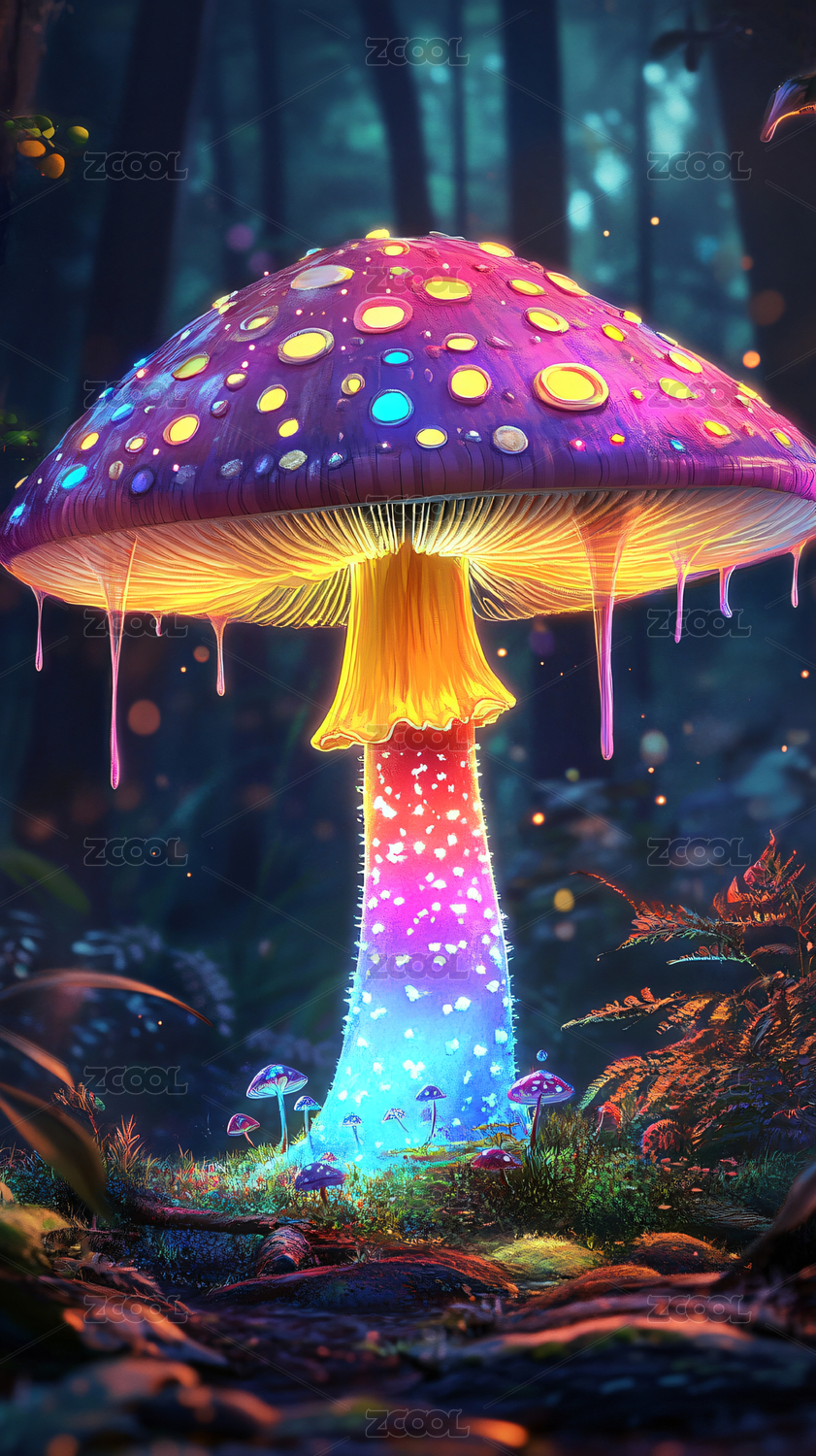 梦幻森林中的蘑菇和蝴蝶唯美安静风光