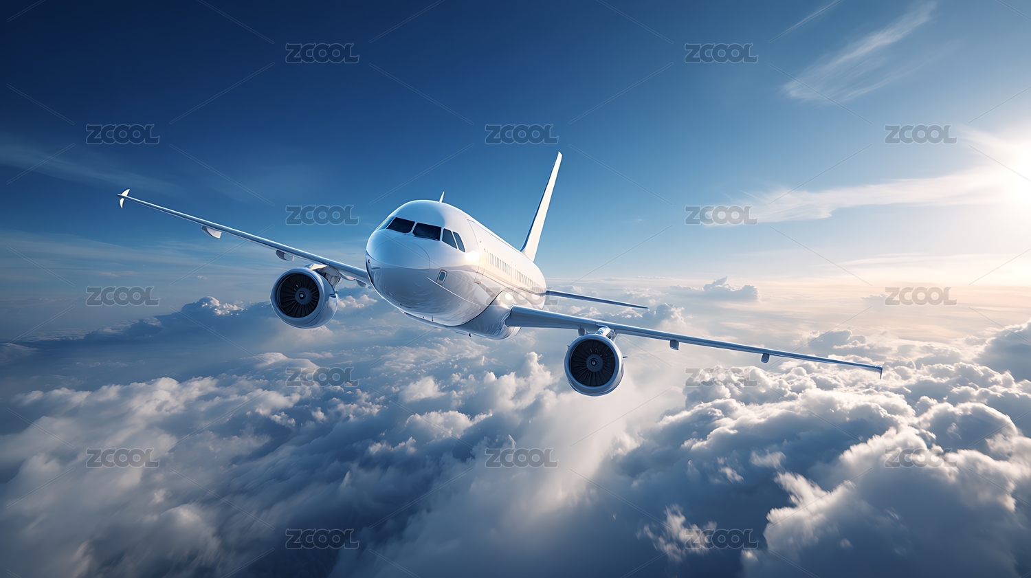 飞机翱翔云海蓝天图