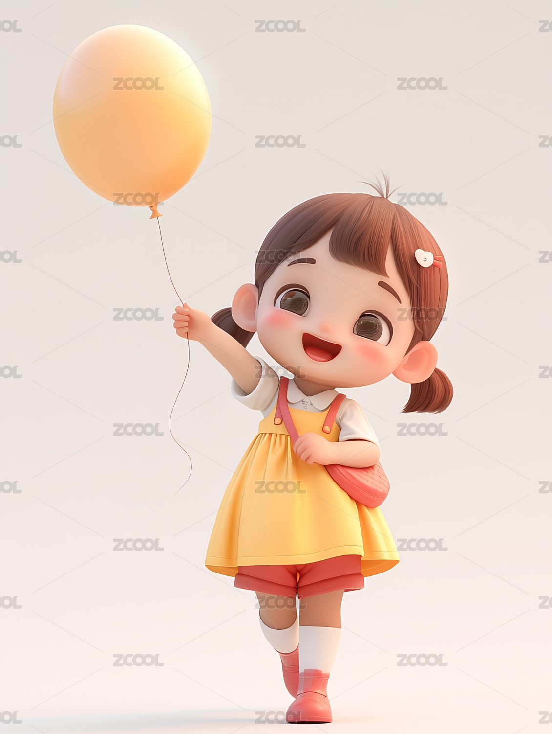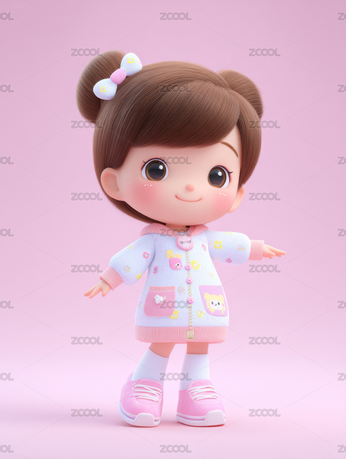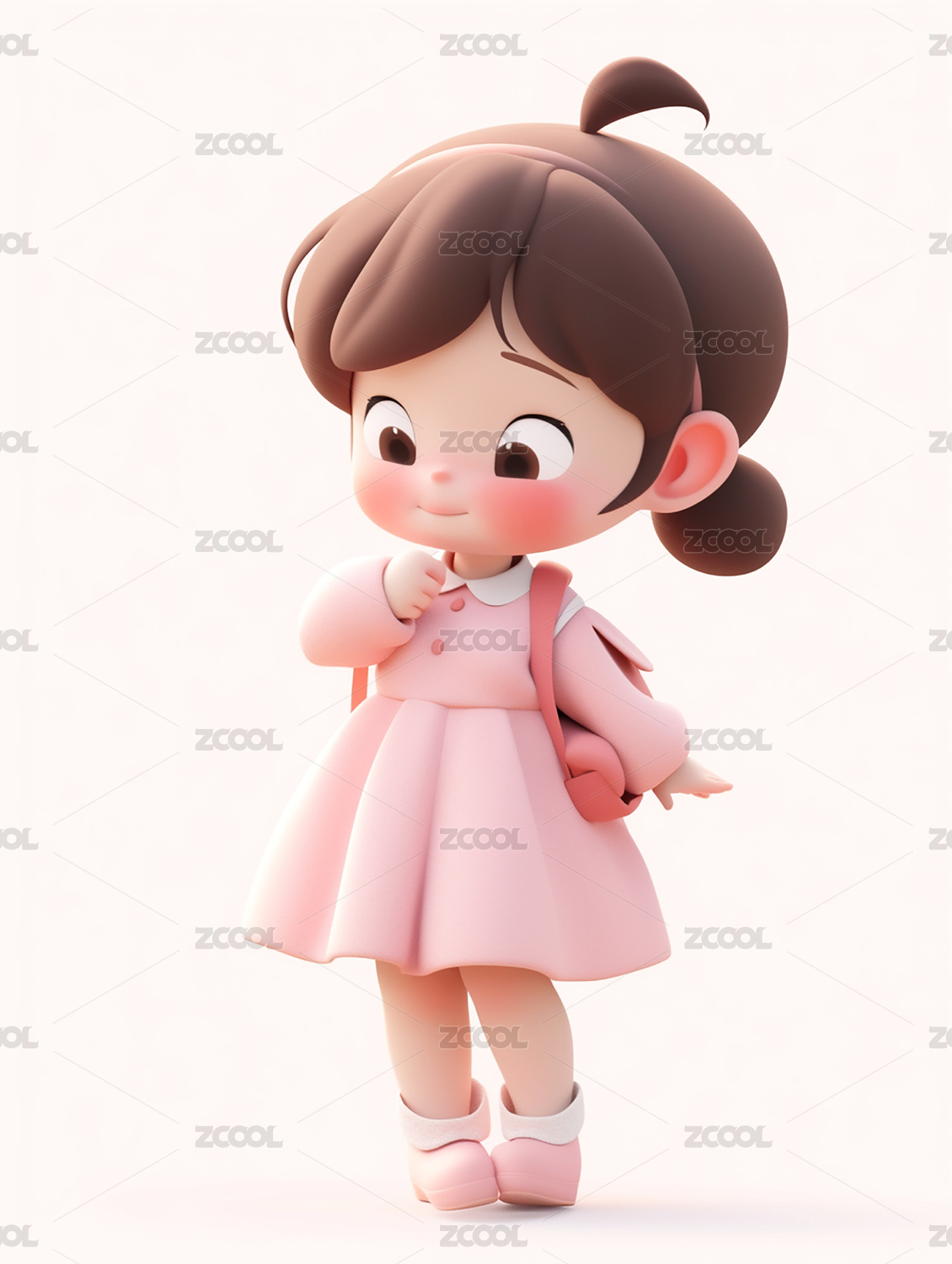 一个穿着粉色连衣裙的卡通女孩的特写高清图