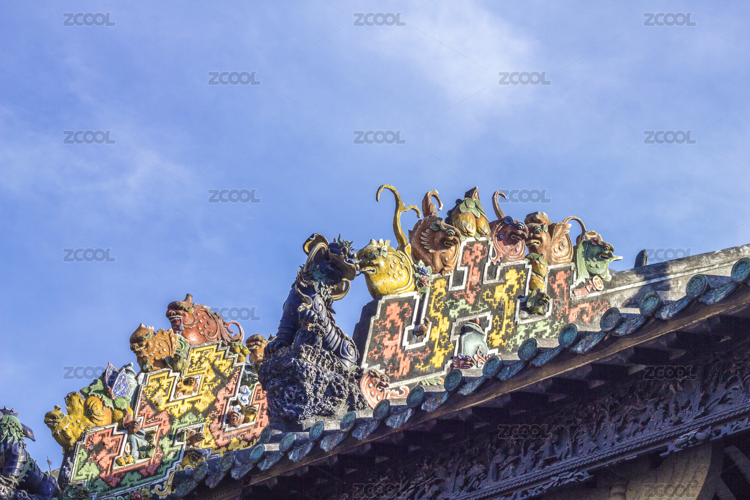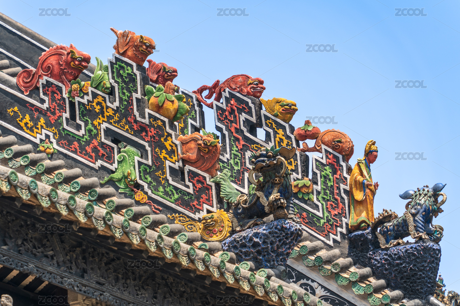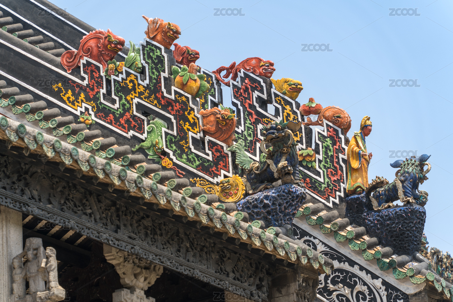 中国广州陈家祠岭南建筑屋顶灰塑陶塑
