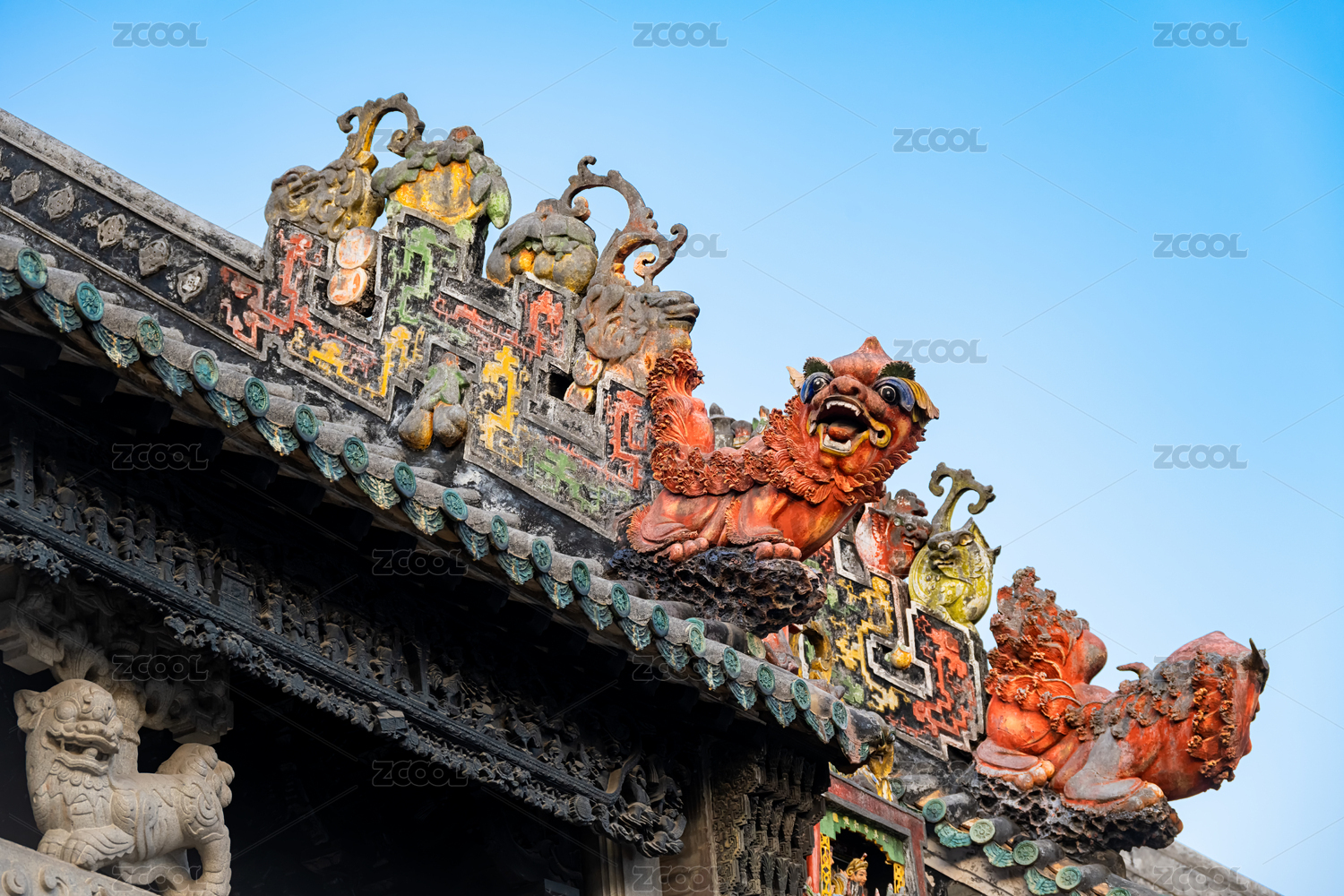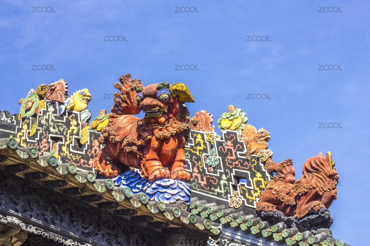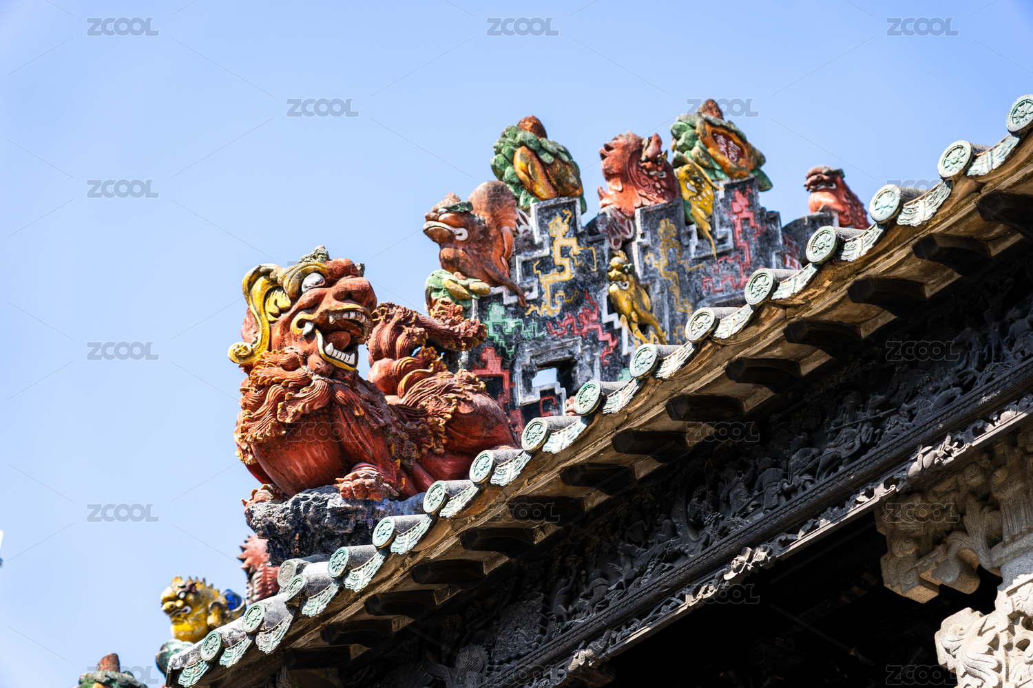 中国广州陈家祠岭南建筑屋顶灰塑陶塑