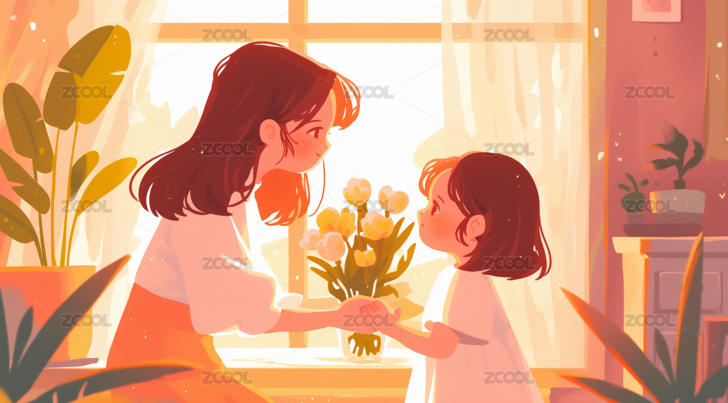 HEYYTDK2021,家庭,活动,母女,亲情,插画,温馨,场景,家人