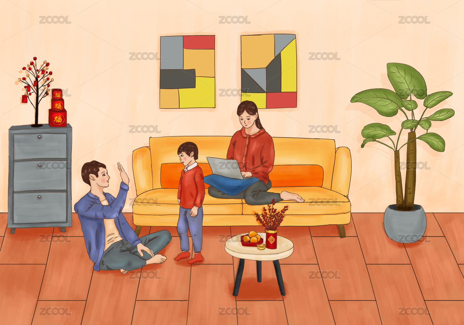 家庭亲情系列插画之玩粘土