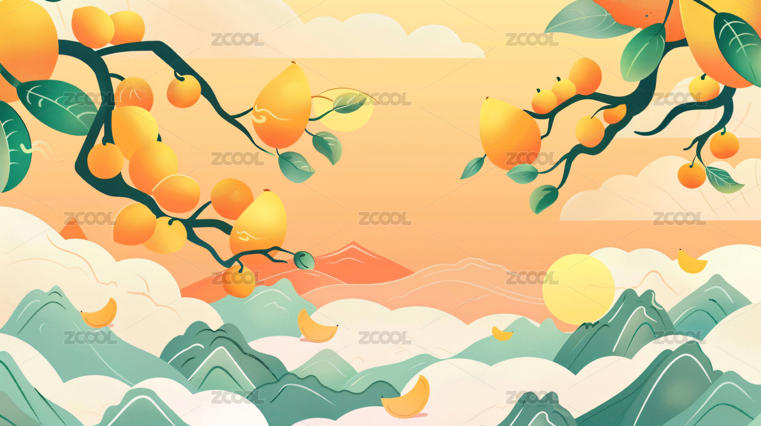 图像,国潮风,插画,AIGCFG,新中式风格,水果,绿色,自然,篮子,收获