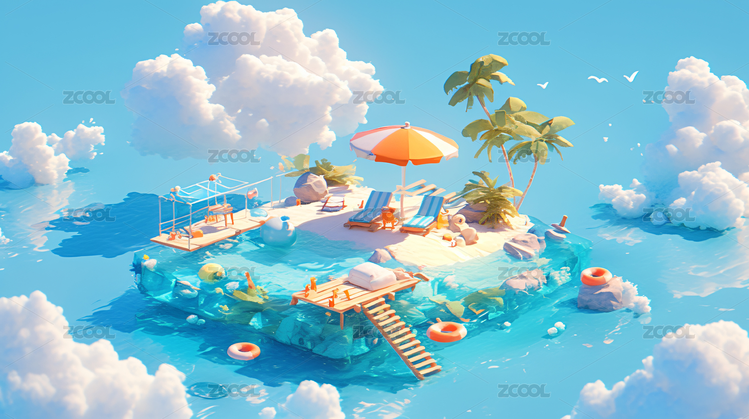夏天,假日,风景,海洋,度假,椰子树,海滩,树,游泳圈,旅行