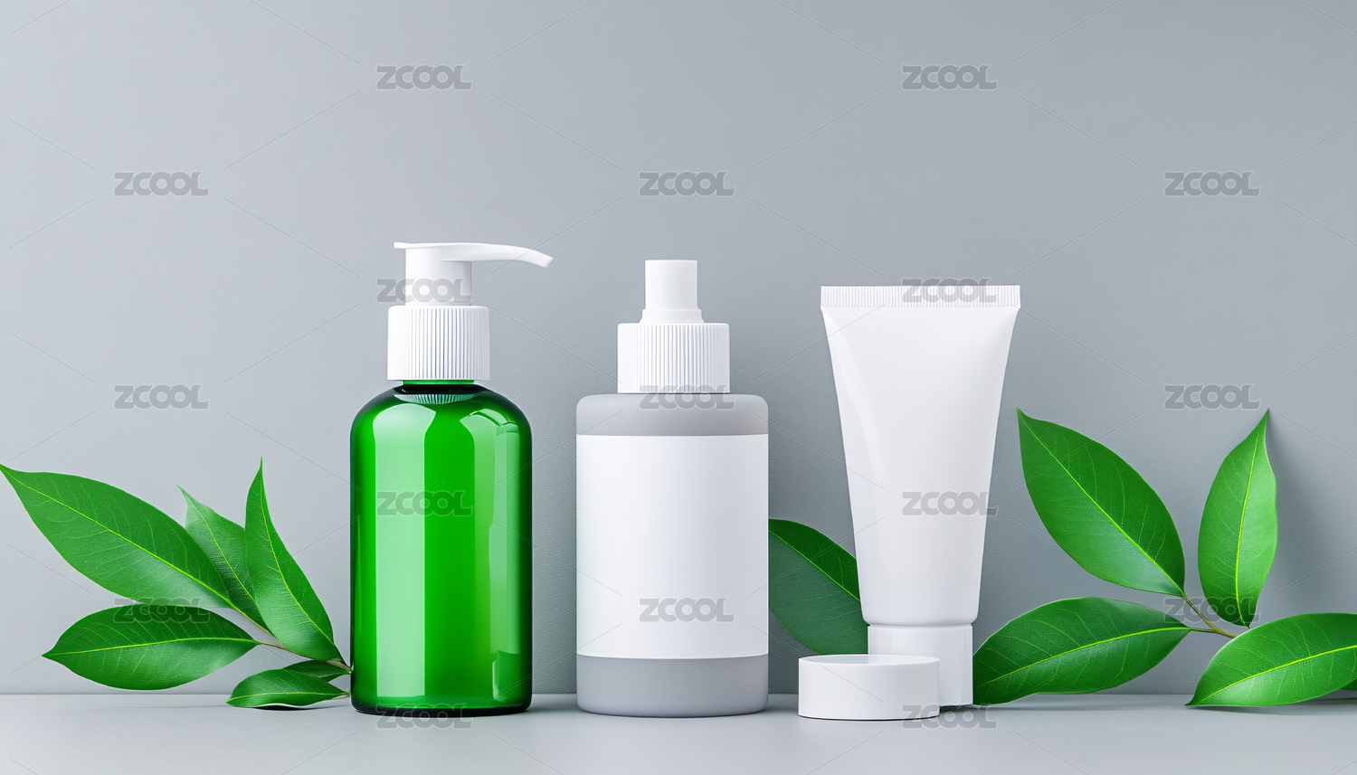 植物环绕的护肤品瓶