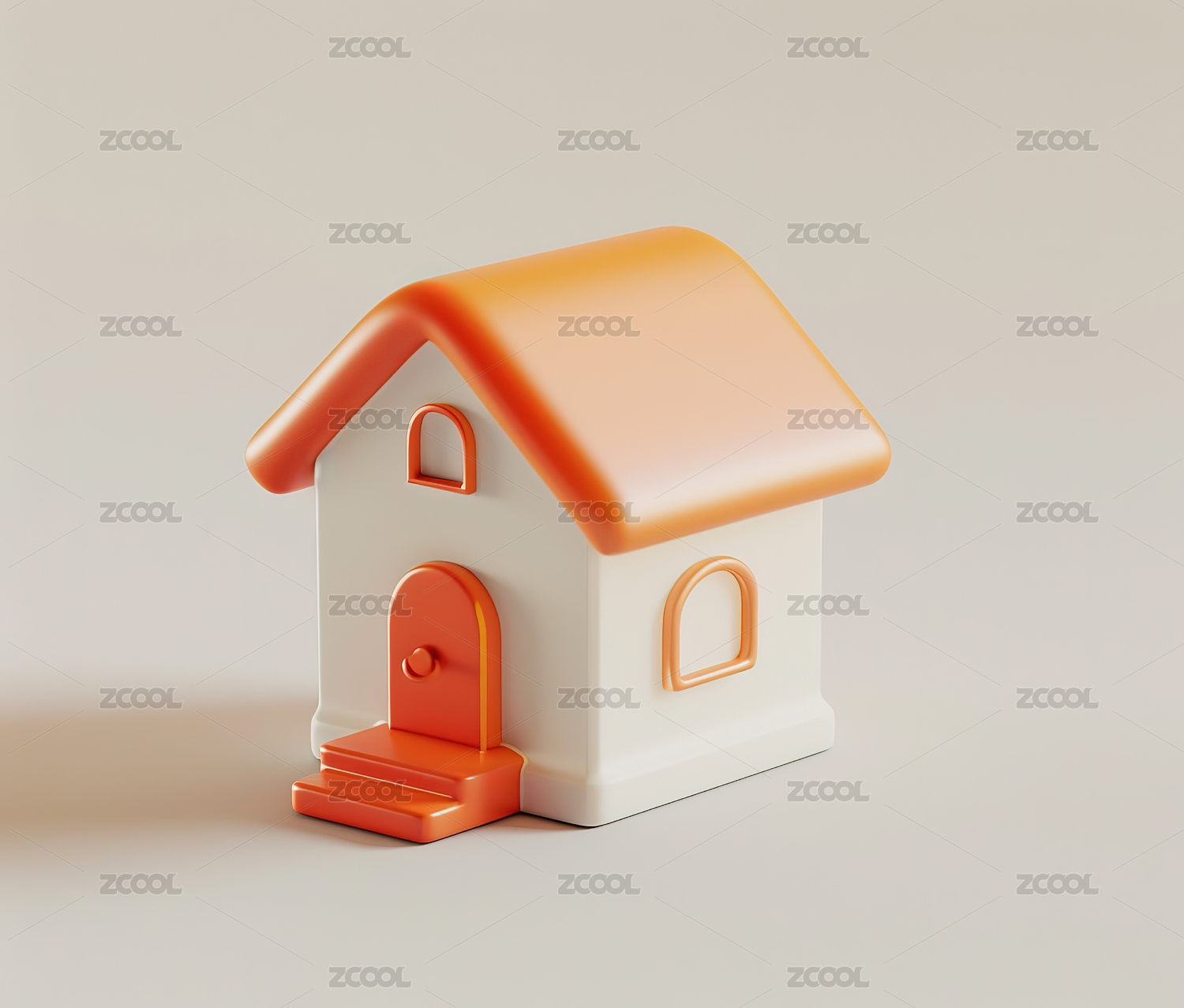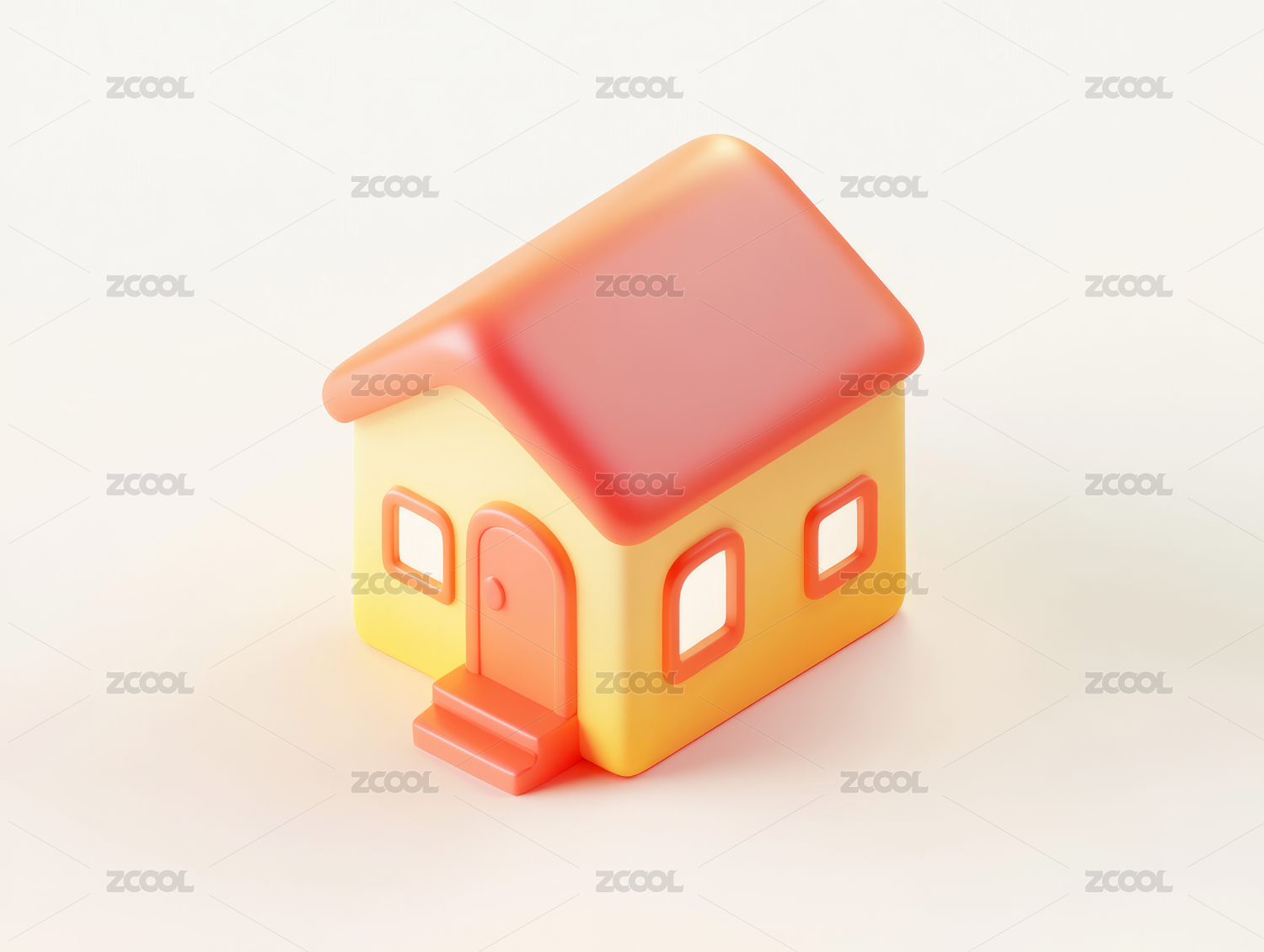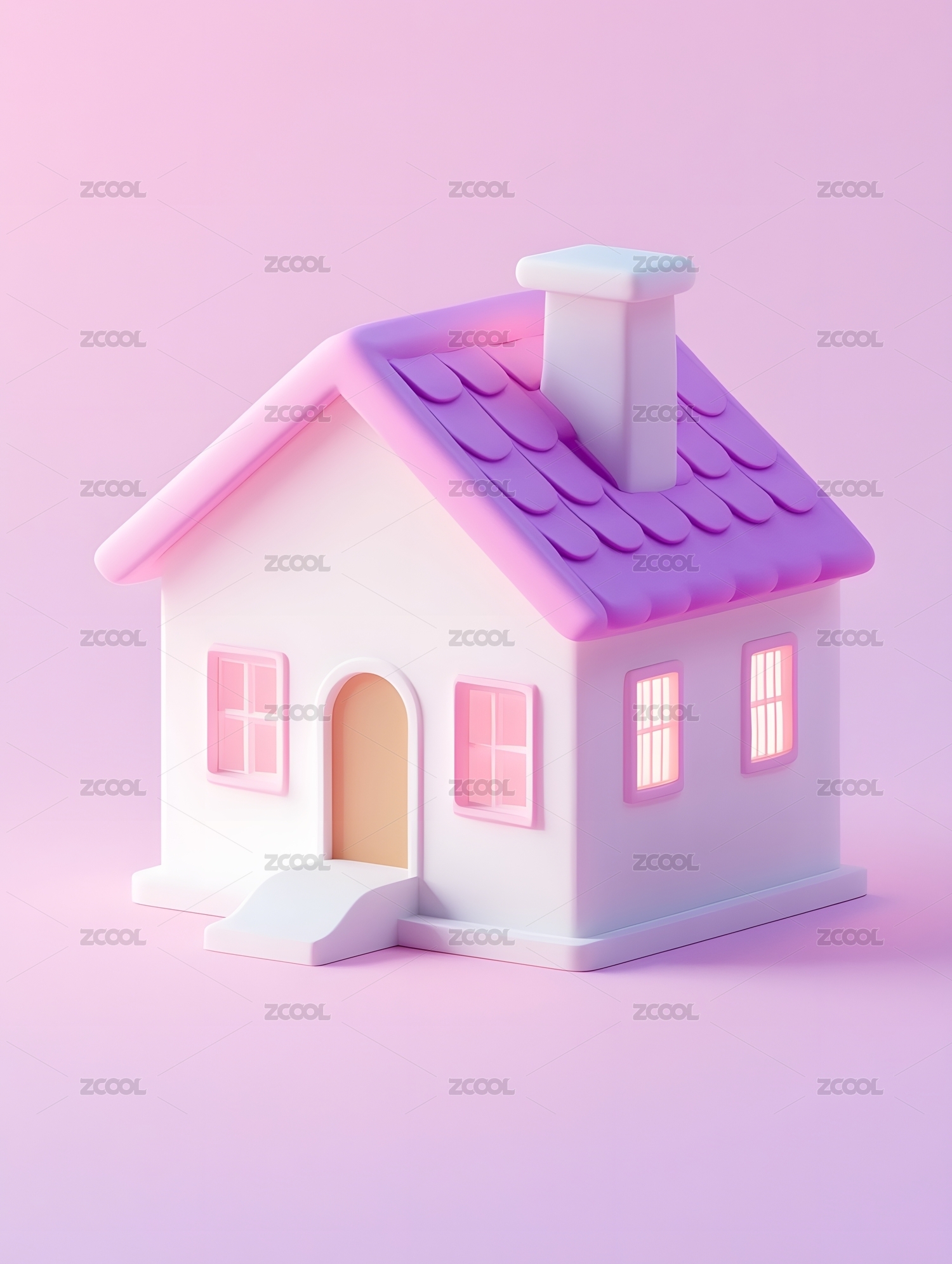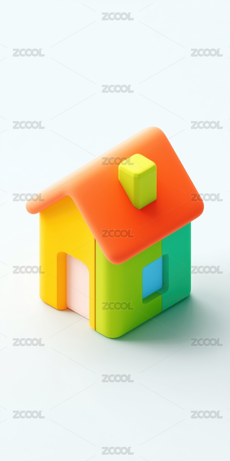 白底珠光色尖顶小屋3D卡通住宅立体背景插