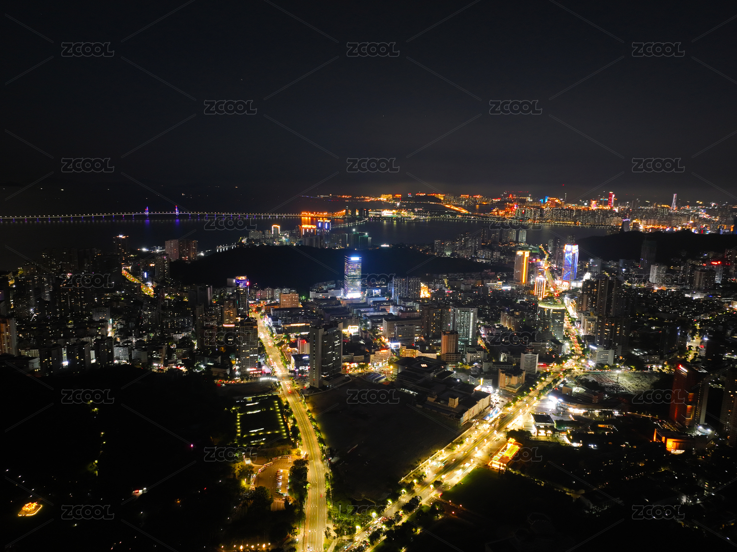 厦门风光,厦门,城市,滨海,夜色,夜景,彩色的,登高,照亮,暮色