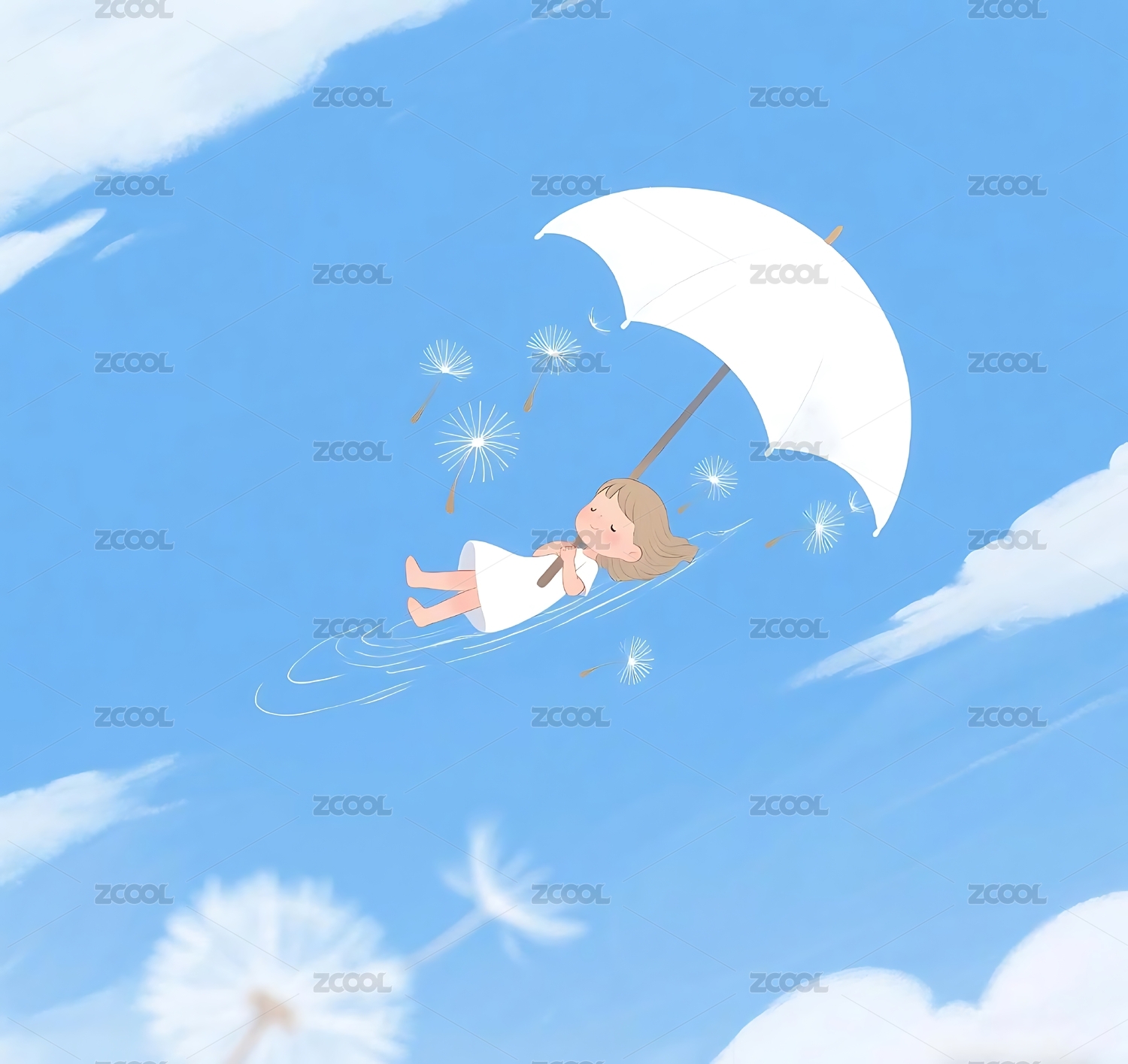 可爱女孩在云朵里睡觉