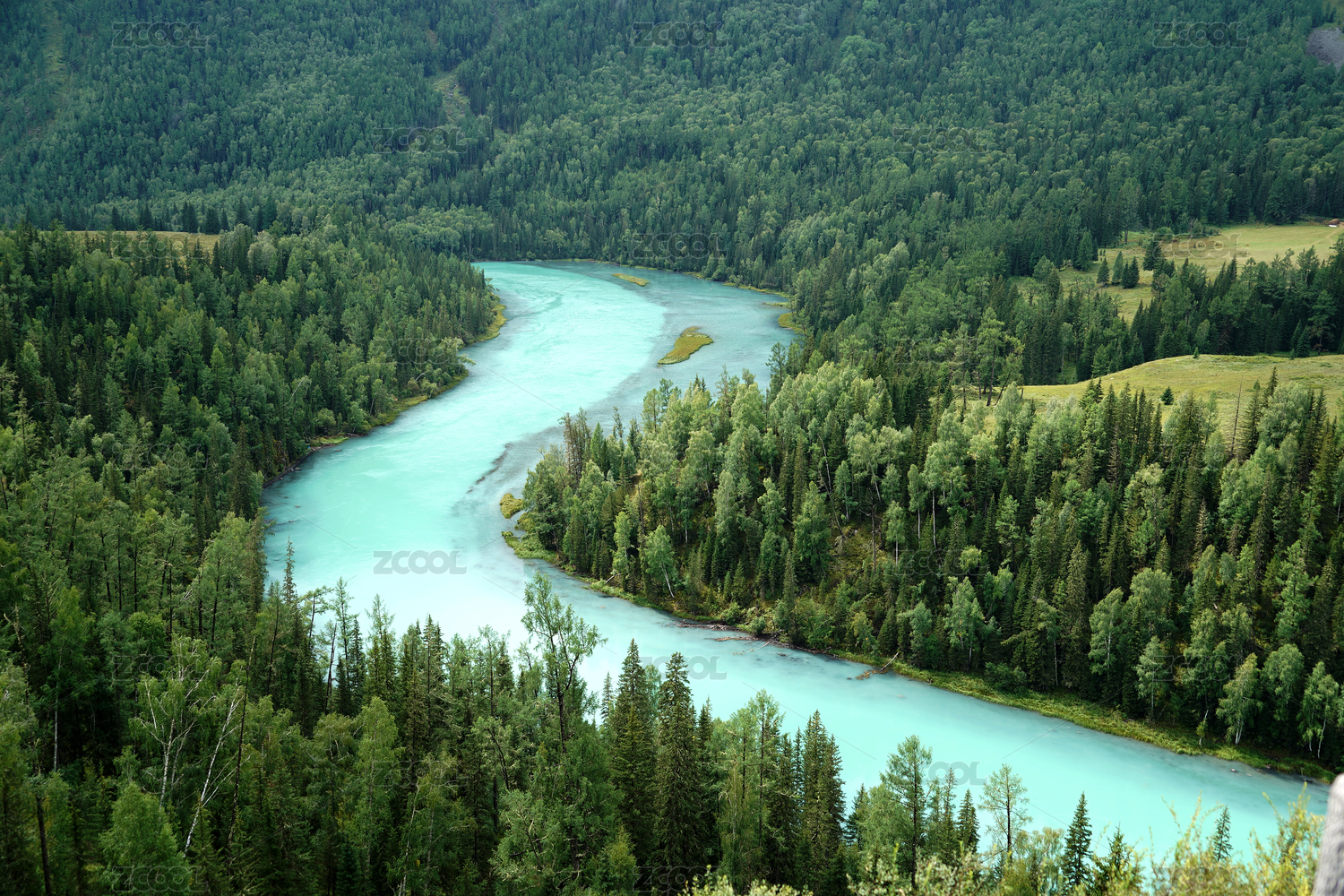 中国新疆阿勒泰布尔津喀纳斯湖景区月亮湾