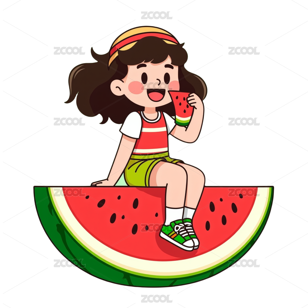 立夏节气女孩夏季吃西瓜解暑降温旅行插画立